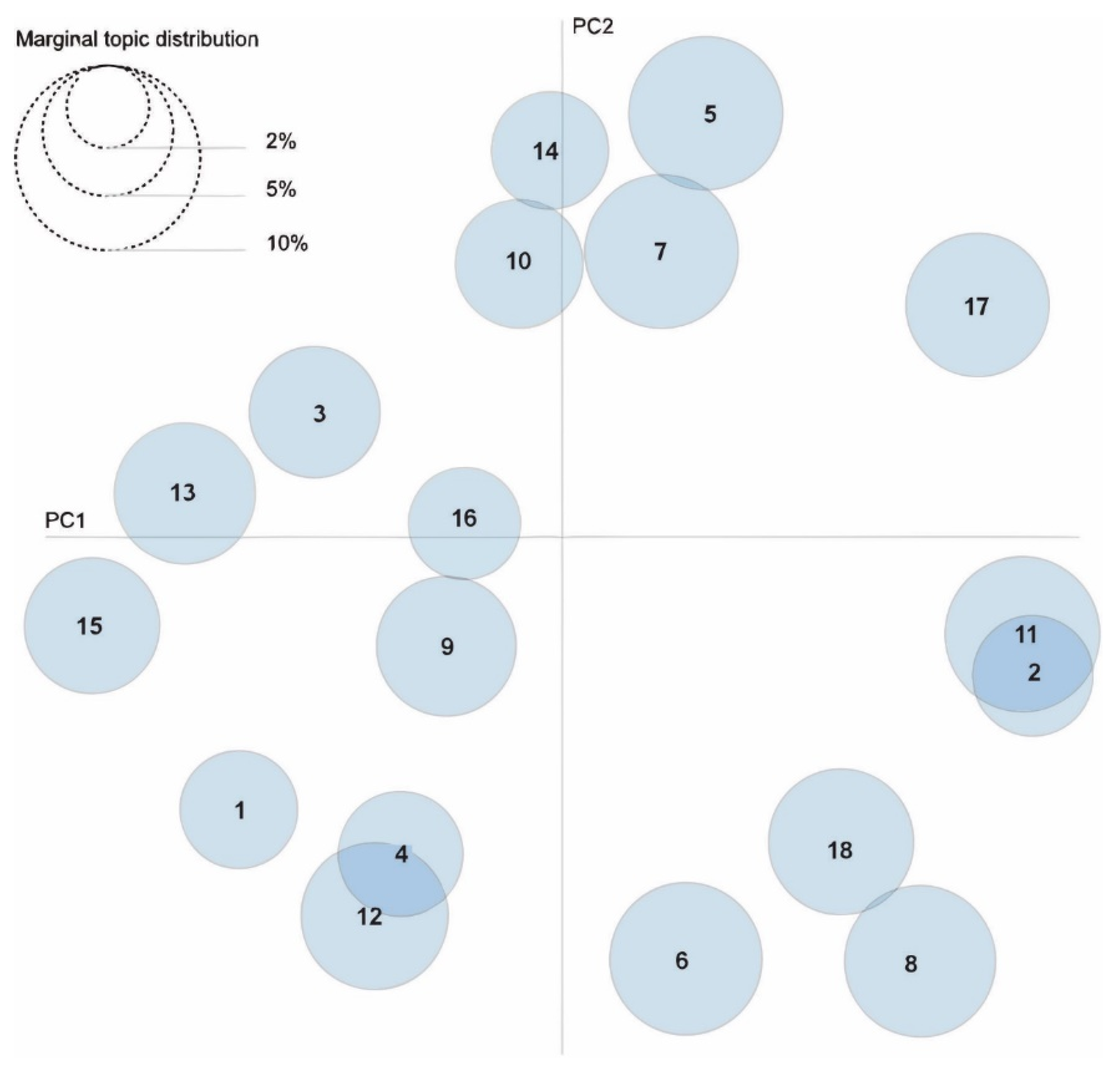 2.5. Visualization of Topics Using Multivariate Techniques