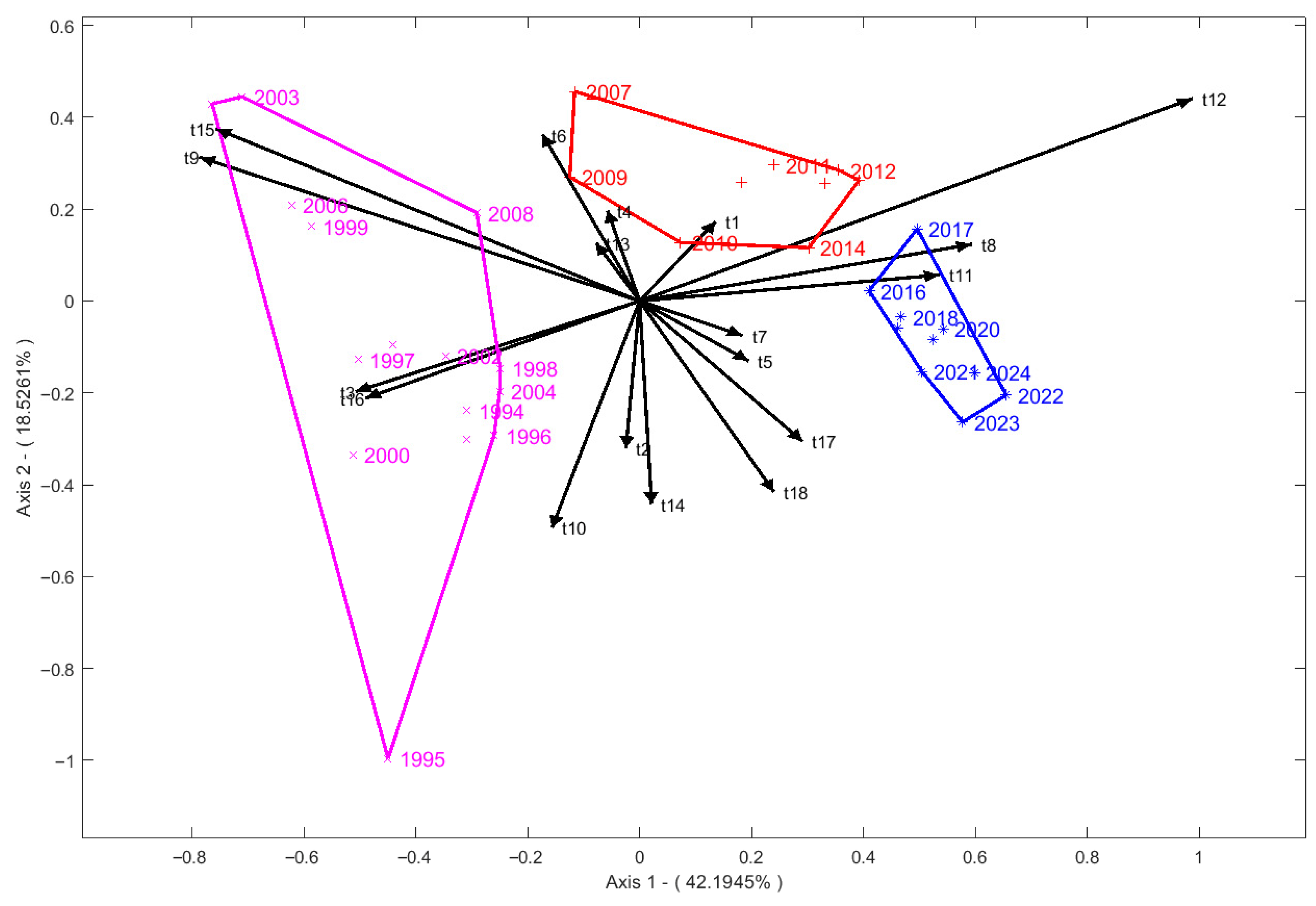 - Gabriel, K.R. The Biplot Graphic Display of Matrices with Application to Principal Component Analysis. Biometrika 1971, 58, 453–467. [Google Scholar] [CrossRef]