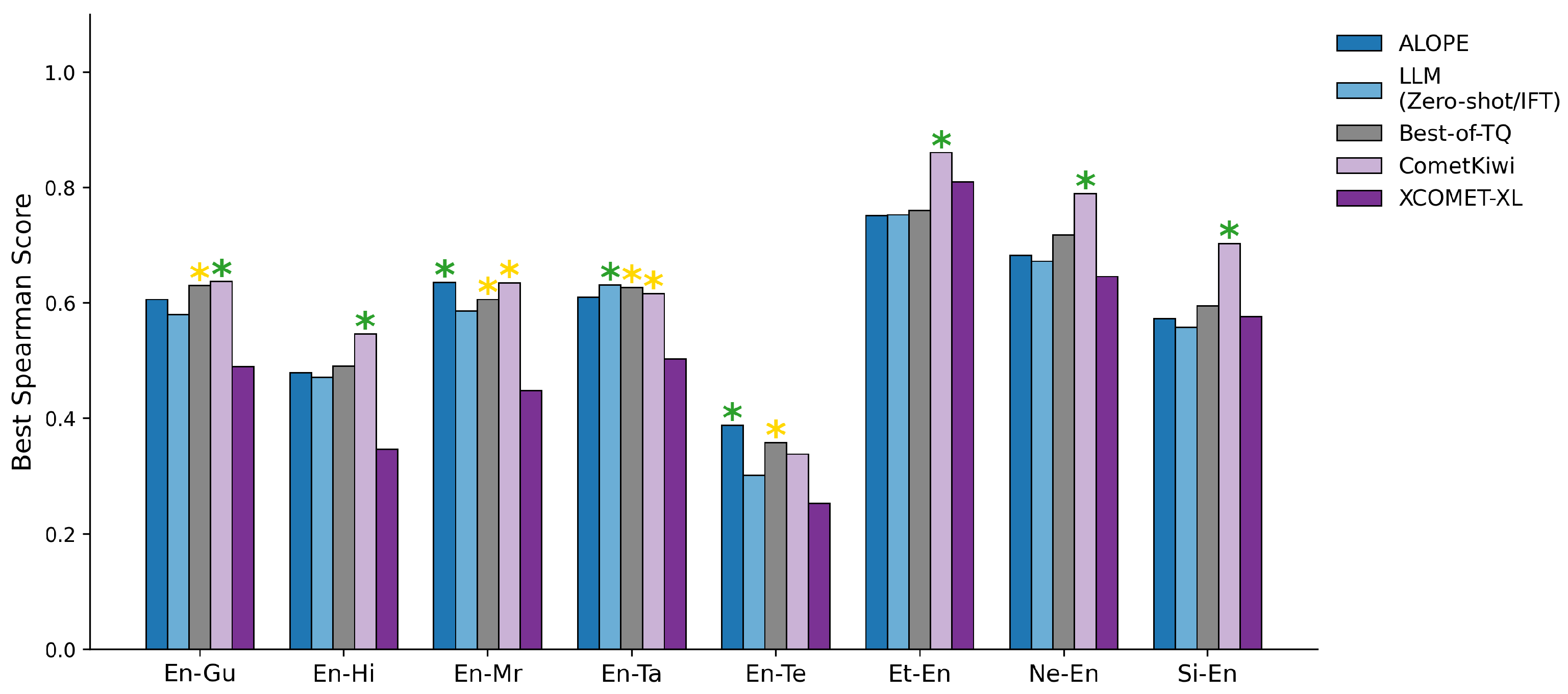 | Tower+-72B | 0.238 | 0.369 | * 0.422 | 0.254 | 0.142 | * 0.753 | * 0.580 | 0.384 | |