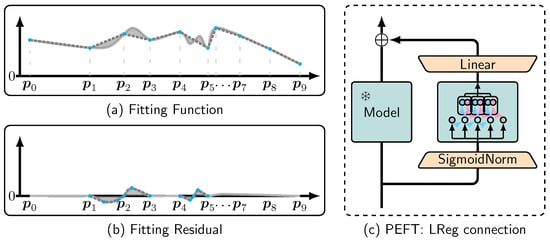 To address this issue, LReg can be incorporated as a module within PEFT methodologies. As shown in Figure 2, consider the target and a pre-trained model . When is well trained, the residual remains nearly flat around the value of 0 throughout the input space. This sparsity in the residual’s support set suggests that dimensionality reduction on features could serve as an effective strategy for applying LReg to high-dimensional inputs.