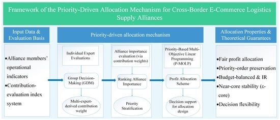 Nevertheless, research on cross-border e-commerce logistics supply chain alliances remains limited. No existing study explicitly incorporates internal cooperation structures (e.g., priority-based coalition forms) into profit allocation design, even though these structures materially influence alliance stability and incentive compatibility (Meng et al., 2023; Wang and Zhu, 2023; Ding and Jian, 2024; Asghari et al., 2022) [