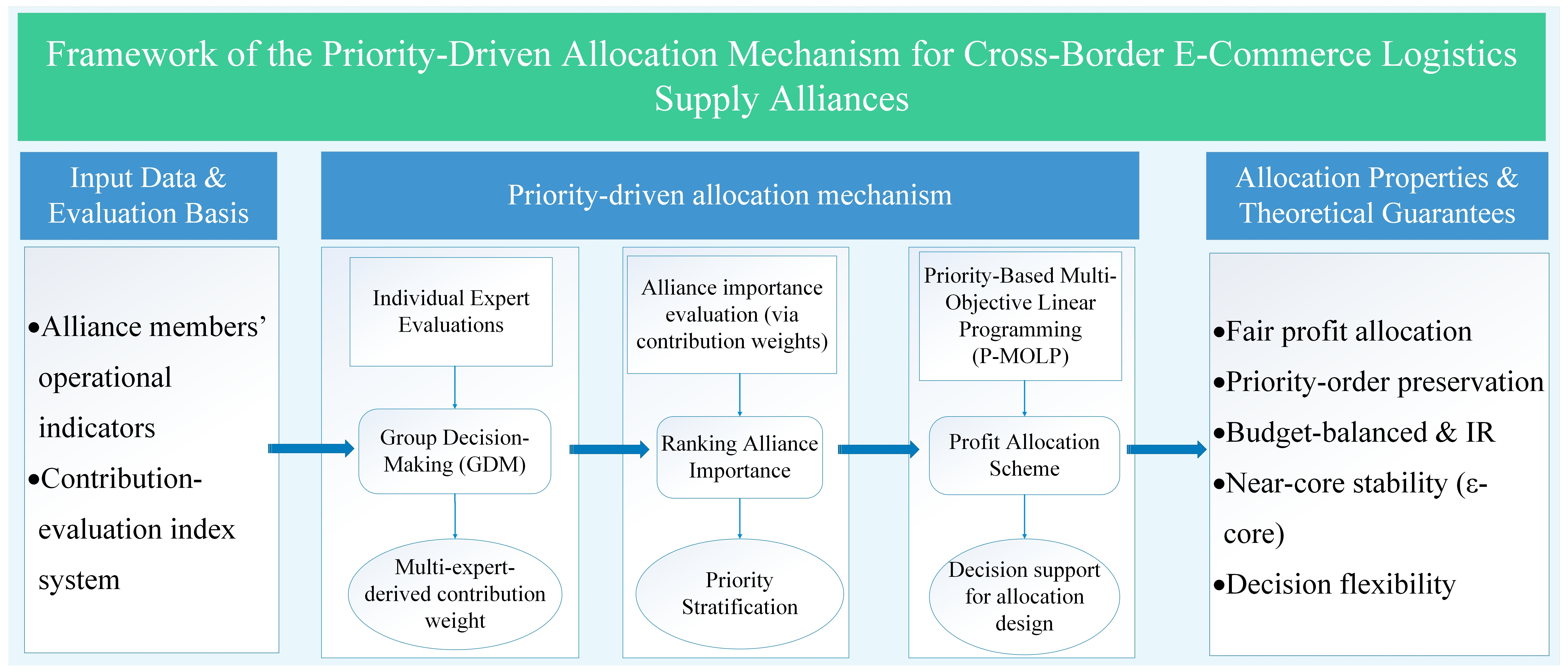 We have developed a unified priority-based multiobjective linear programming (P-MOLP) allocation method that integrates GDM-based contribution evaluation with explicit cooperative priority control in an optimization scheme.
