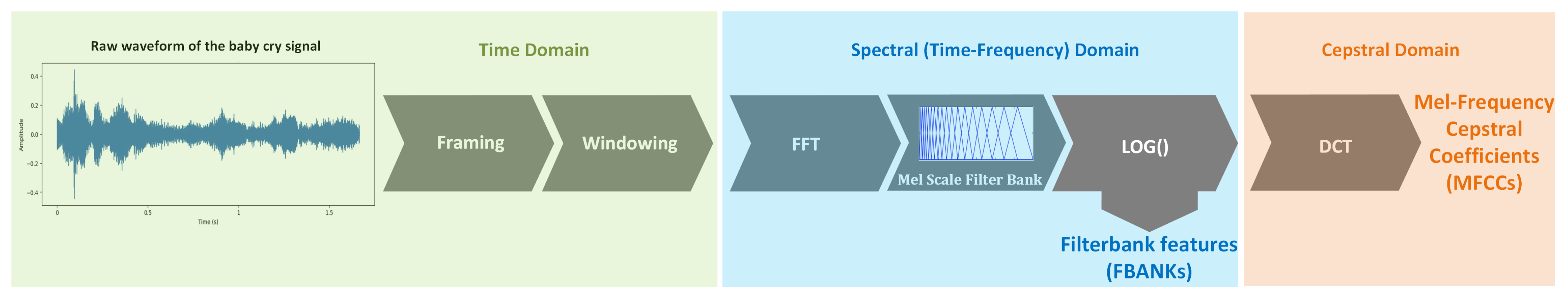 - Salehian Matikolaie, F.; Tadj, C. Machine Learning-Based Cry Diagnostic System for Identifying Septic Newborns. J. Voice 2024, 38, 963.e1–963.e14. [Google Scholar] [CrossRef]