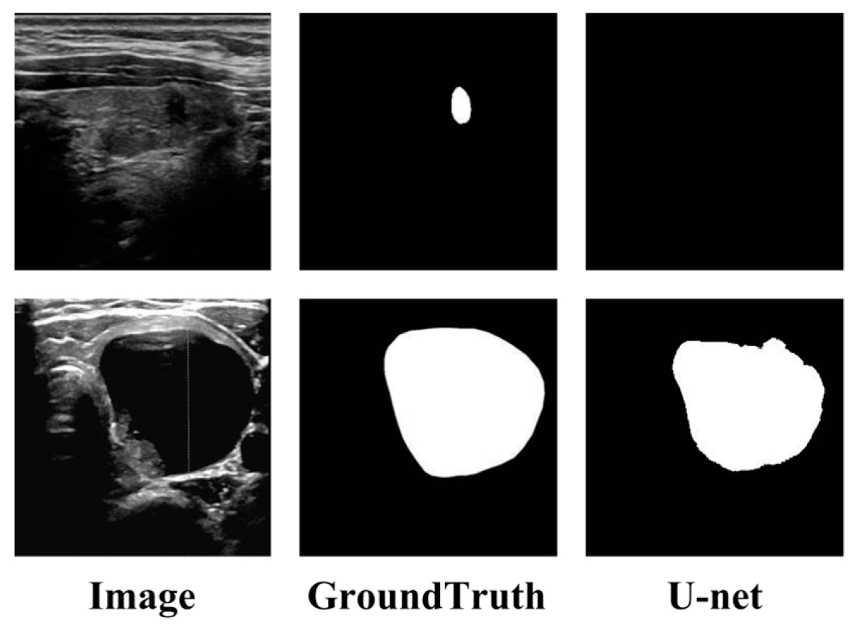 Figure 1. Examples of issues with U-net in thyroid ultrasound image segmentation.