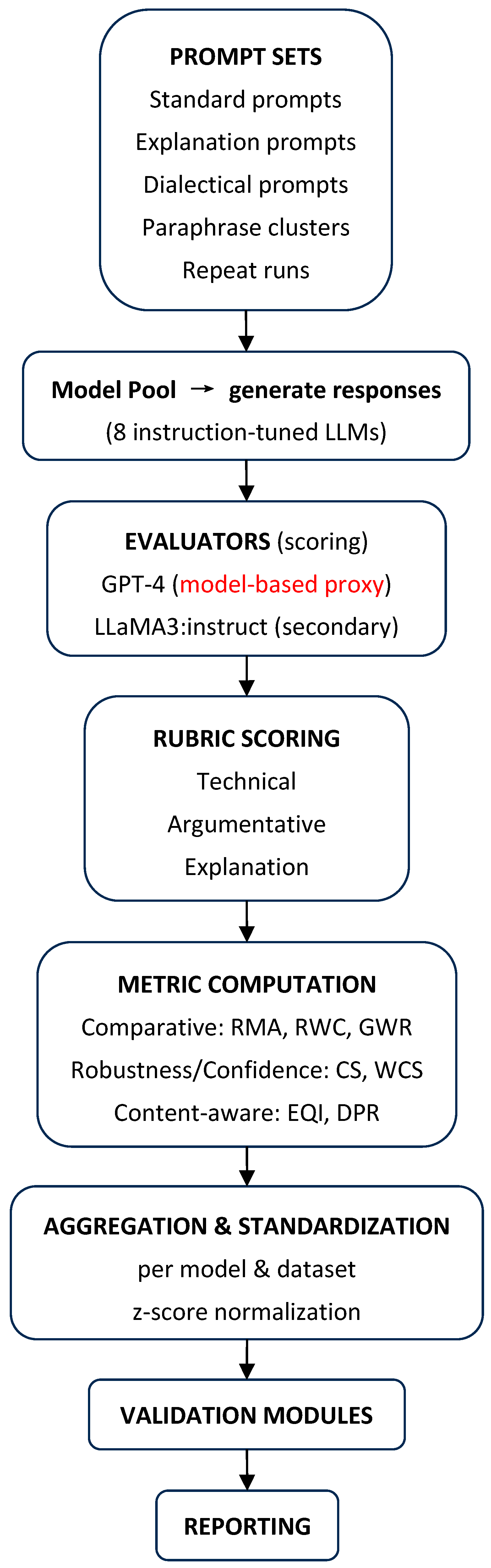 - We validate the framework across four curated synthetic evaluation conditions using education-aligned prompt sets (rubric-matching, explanation tasks, dialectical sequences, and paraphrase consistency).