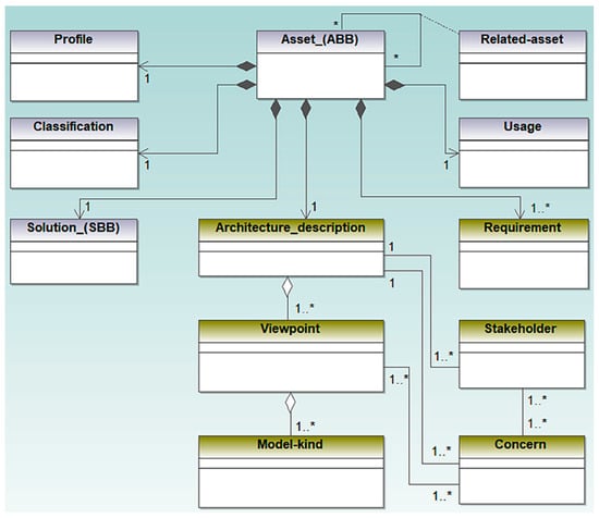 To formally specify, describe and manage reusable ABBs, we created ABB-profile (see Figure 2), an extension of the “Default Profile” of the Reusable Asset Specification (RAS), Version 2.2 [46]. standard and the ISO-42010:2011 [50] Systems and software engineering—Architecture Description standard. ABB-profile is made up of the following classes: