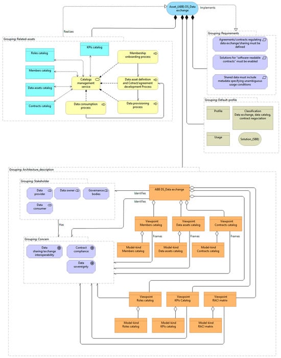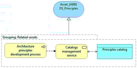 For space reasons, below we will only develop the grouping related-assets of this ABB and the viewpoint principles catalog of the grouping architecture-description.