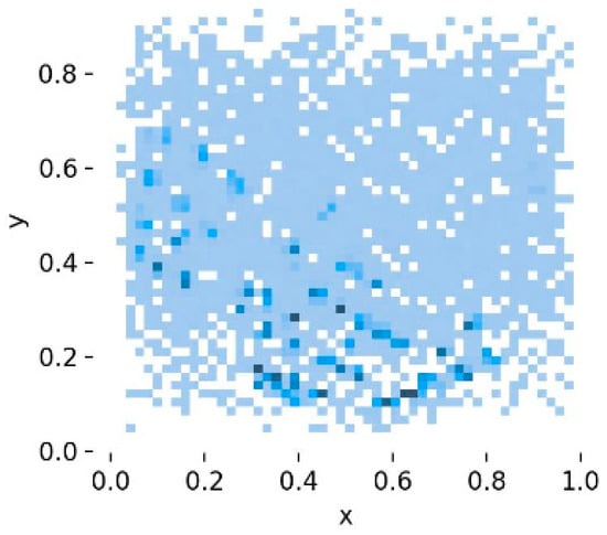 Bounding Box Center Coordinates in the Dataset. The deeper the blue, the more data points there are at that location, indicating a higher density.