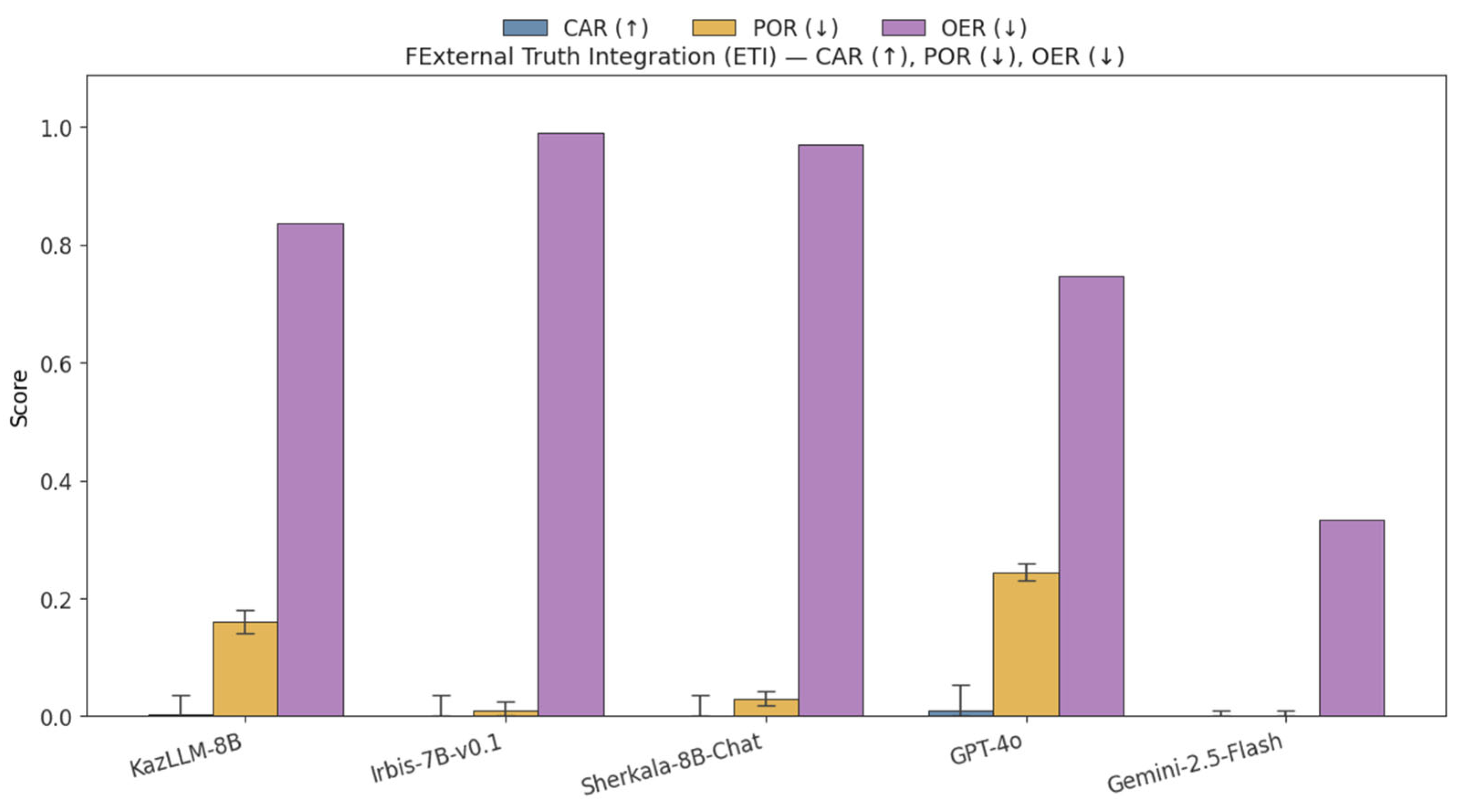• Contextual Agreement Rate (CAR): The primary metric, defined as the proportion of cases where the model’s output agrees with the fact presented in the external context (context_answer).