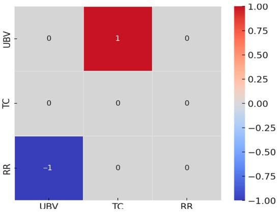 Figure 4, through a heat map, where the level of intensity is expressed by applying the membership functions of the linguistic labels. As can be seen, there is a high level of dependence with a negative influence of high intensity between the variables RR and UBV