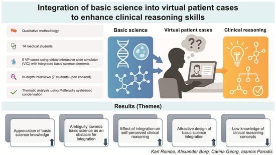 Rombo, K.; Borg, A.; Georg, C.; Parodis, I. Integration of Basic Science into Virtual Patient Cases to Enhance Clinical Reasoning Skills. Information 2025, 16, 950. https://doi.org/10.3390/info16110950