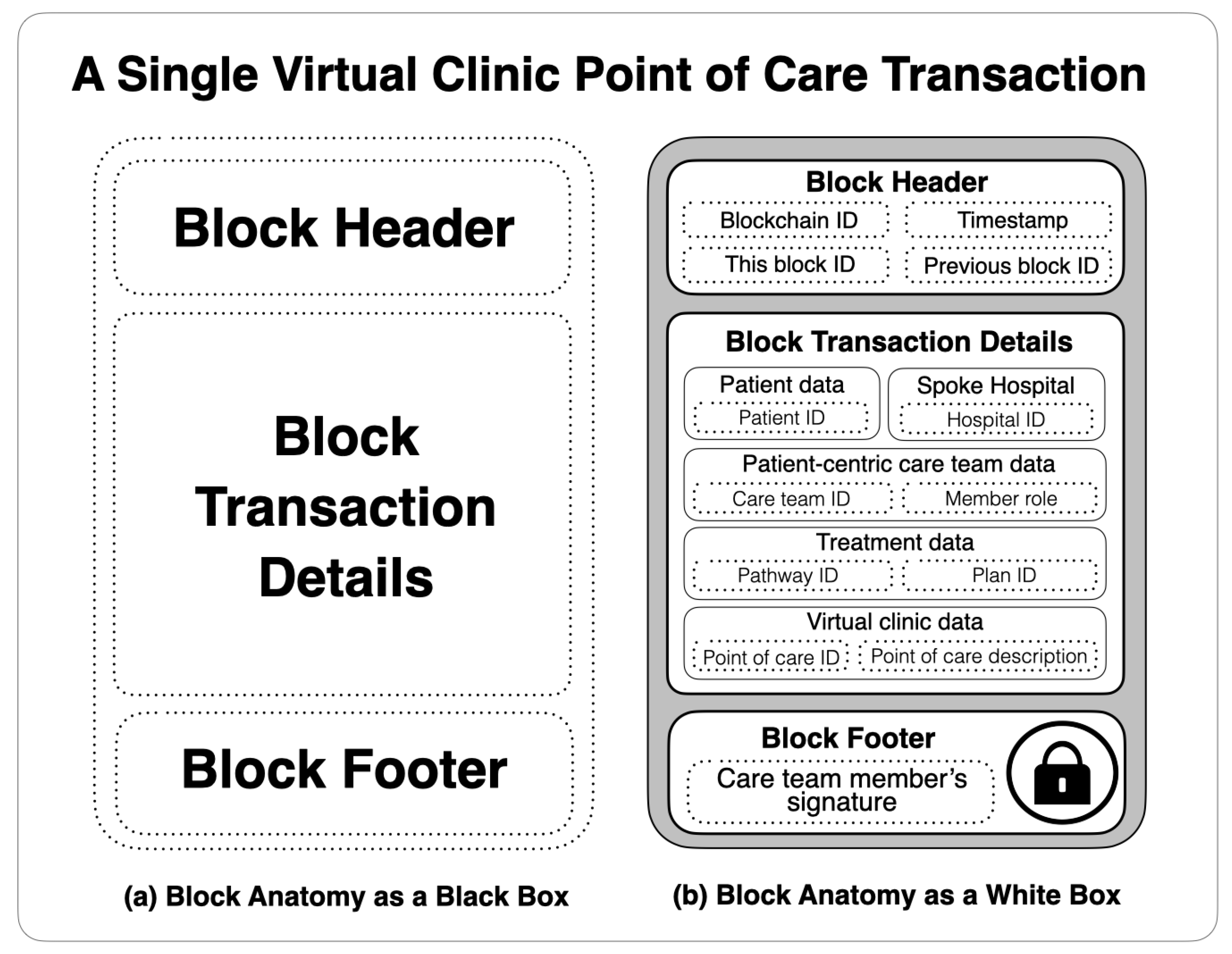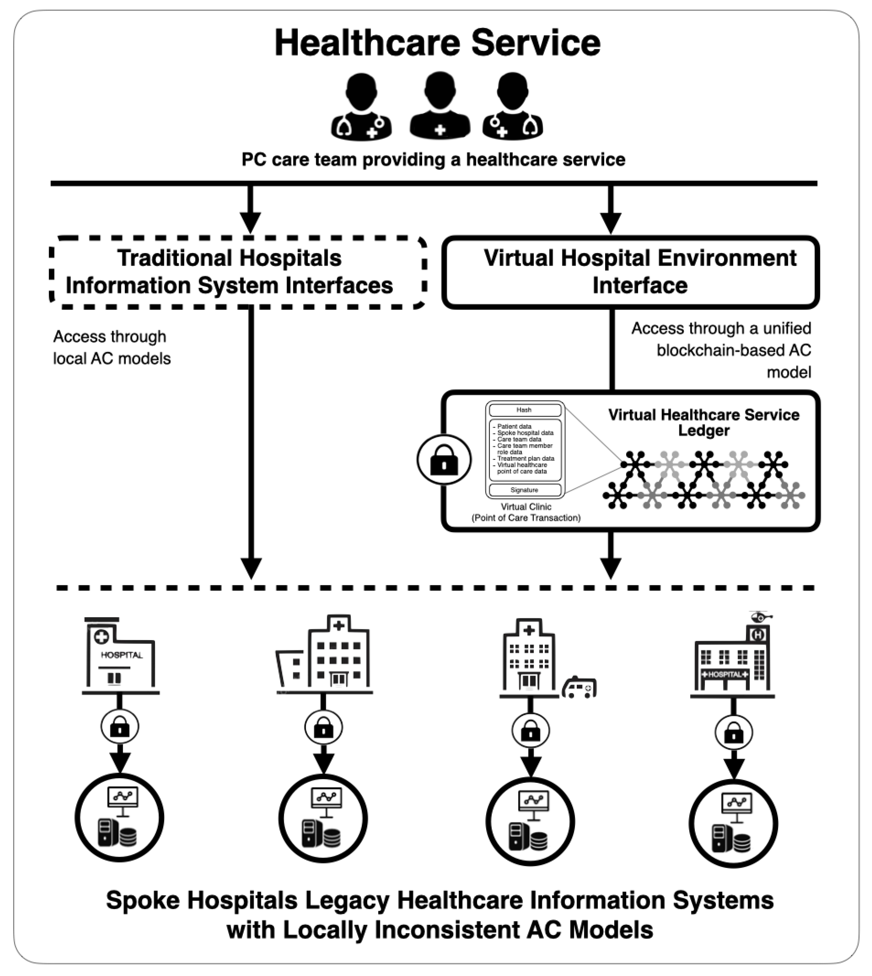 - Developing a blockchain-based VCAC model that extends—rather than replaces—legacy healthcare information systems and EMRs, thus enabling secure, patient-centered (PC) data exchange without disrupting existing infrastructure.