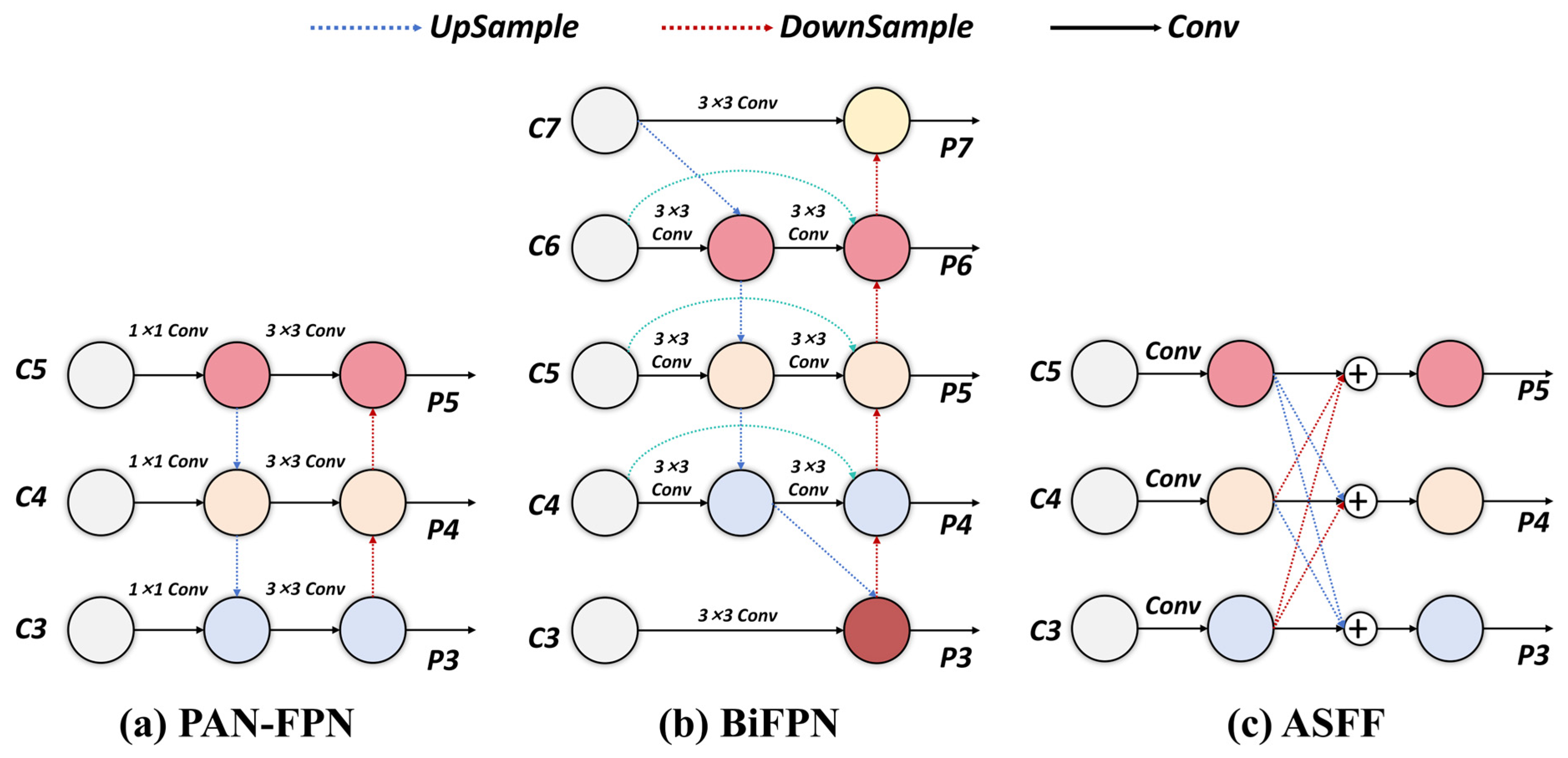 - ASAF-Pyramid (B) This variant serves as an ablative counterpart to demonstrate the effectiveness of our core fusion strategy independently of adding new scales. It applies the proposed progressive feature refinement and cross-tier adaptive weighting only to the original three pyramid levels (P3, P4, P5). This design allows for a direct comparison with the baseline YOLOv8 neck, showing that our fusion method itself brings significant improvement, and the addition of the P2 layer in variant (A) provides a further boost, especially for small targets.