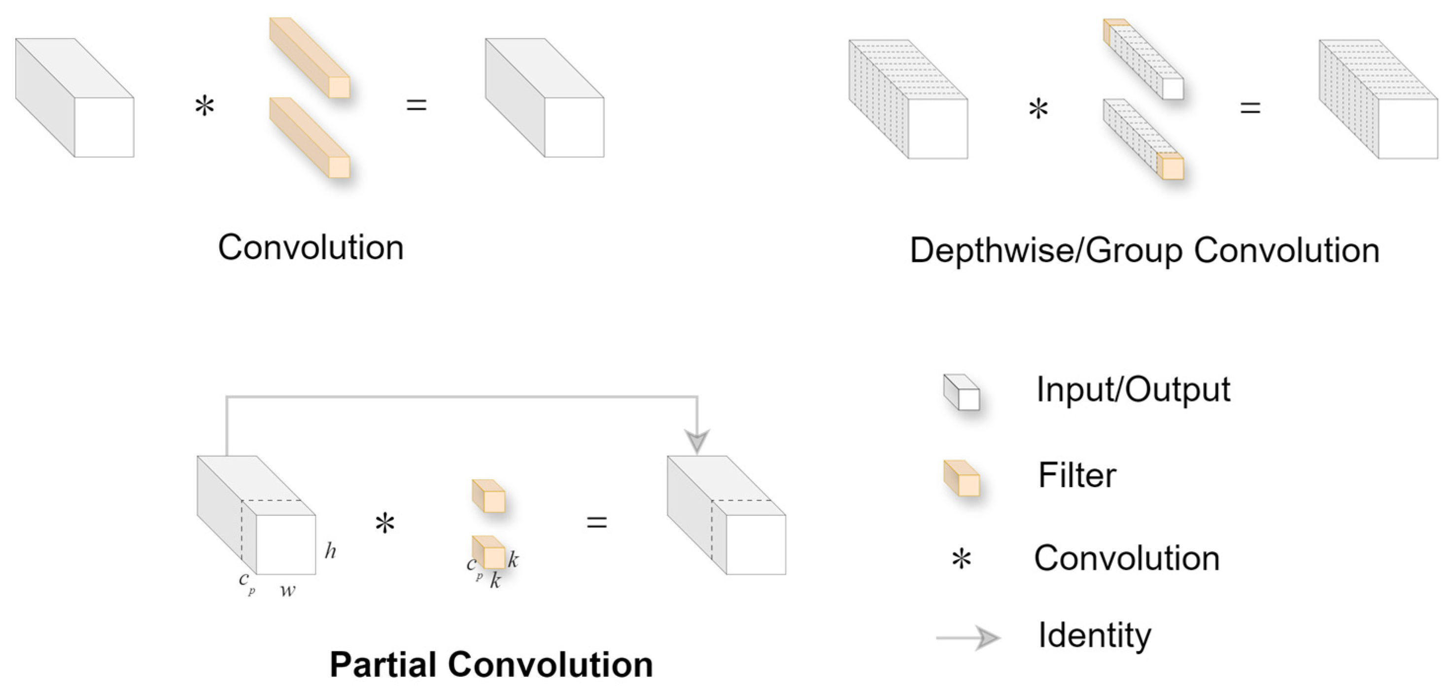 - Chen, J.; Kao, S.; He, H.; Zhuo, W.; Wen, S.; Lee, C.-H.; Chan, S.-H.G. Run, Don’t Walk: Chasing Higher FLOPS for Faster Neural Networks. arXiv 2023, arXiv:2303.03667. [Google Scholar]
