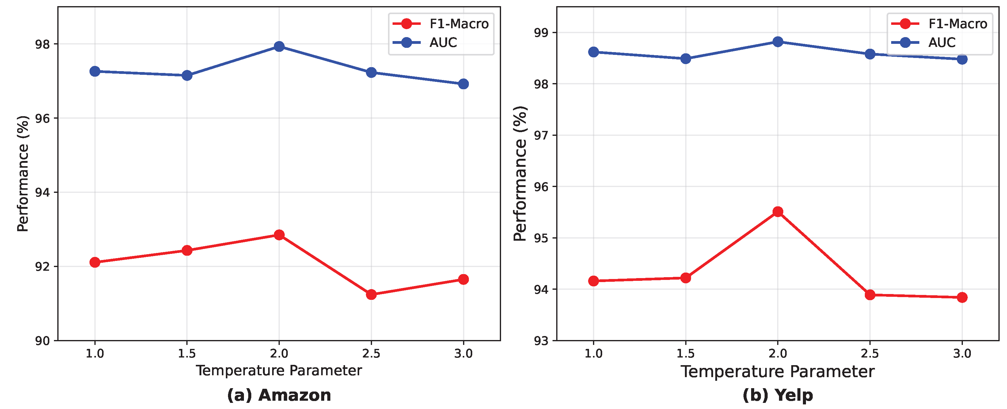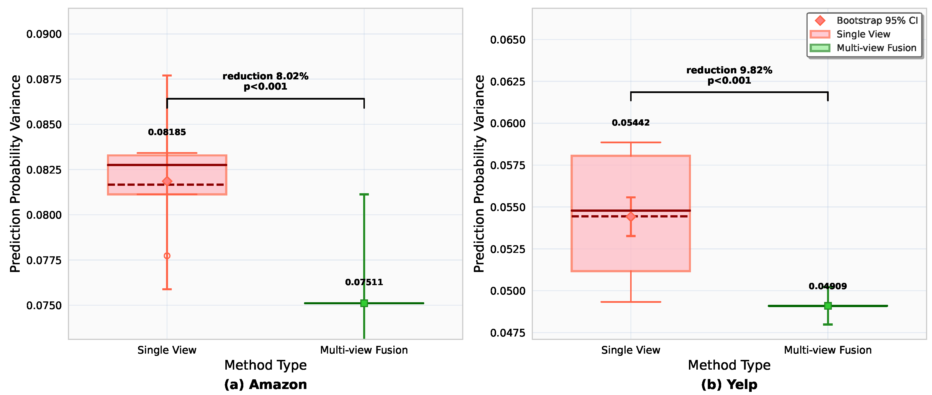 - It avoids introducing additional hyperparameters. The variance reduction observed in Figure 2 (8.02% and 9.82% on Amazon and Yelp) validates this design choice.