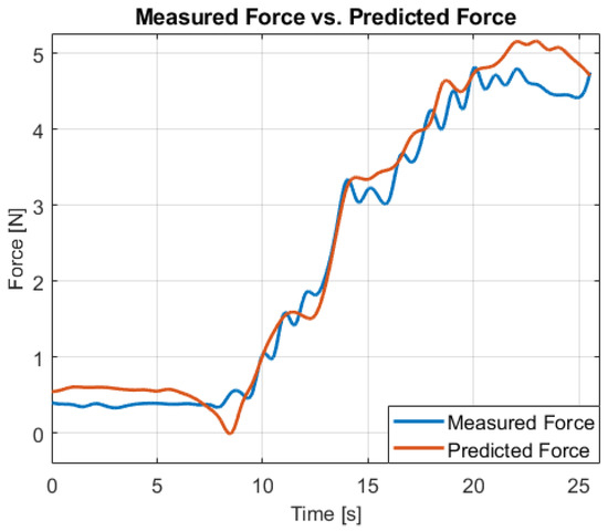 Predicted force using EfficientNetV2B0 compared with the real (measured) force.