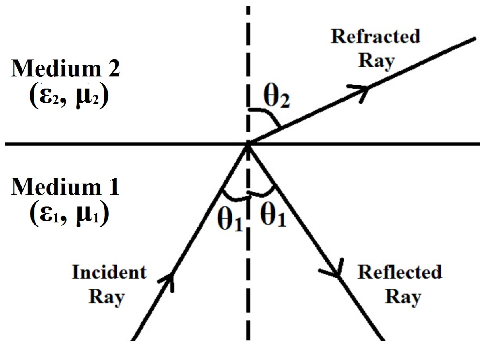 where ϵ 1 and ϵ 2 represent permittivity of medium1 and medium2, respectively; θ 1 and θ 2 are the reflection and refraction angles, respectively.