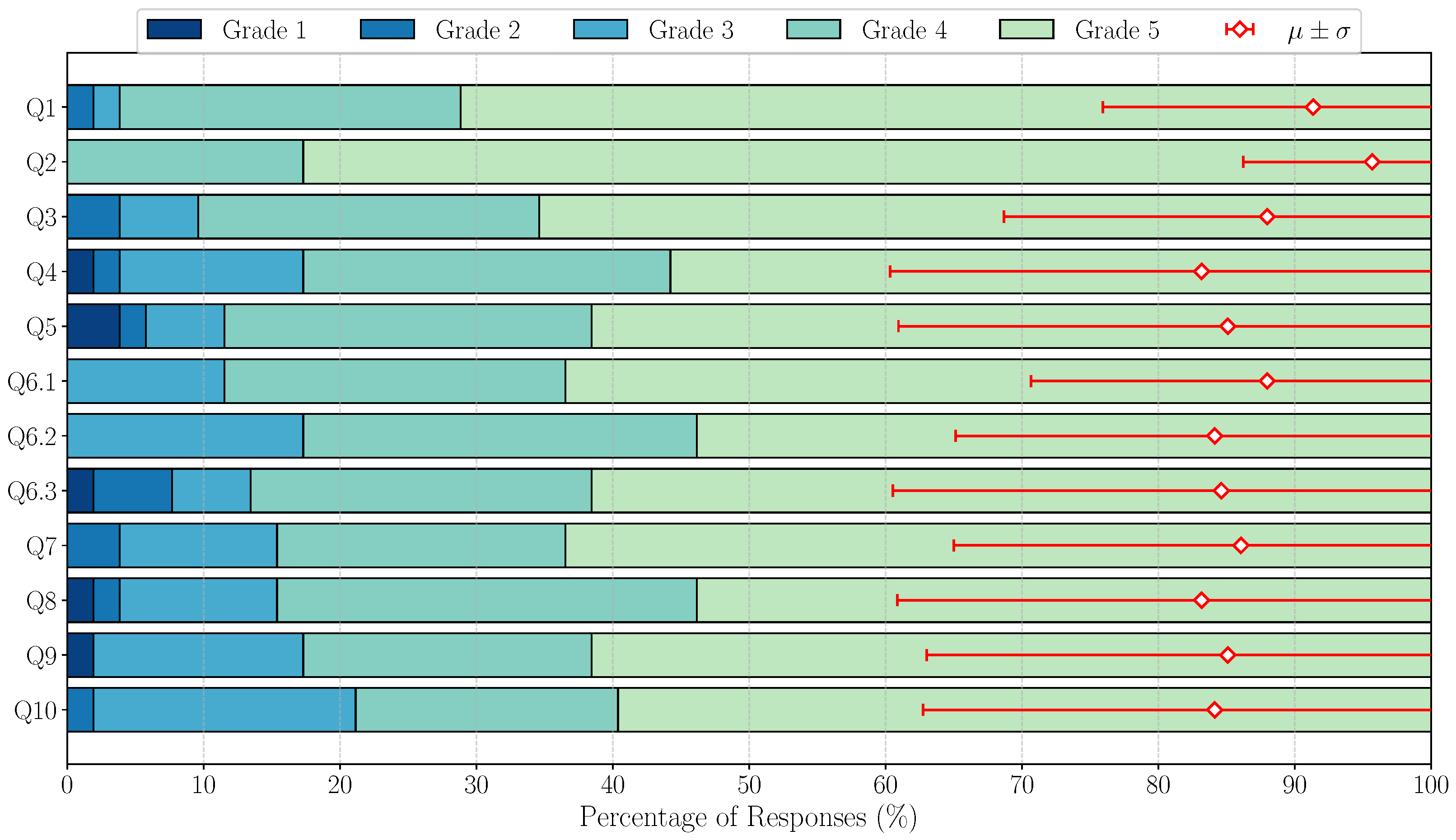 | Question | 1 | 2 | 3 | 4 | 5 | Average Rating | % Rated 4–5 | |