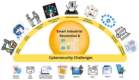 Industrial paradigm evolution has introduced transformative goals emphasizing resource-efficient and intelligent society creation. This trajectory seeks to elevate living standards and mitigate economic disparities through hyperconnected, automated, data-driven industrial ecosystem integration [,,]. This digital transformation promises significant productivity and efficiency enhancement across the entire production processes. These milestones become possible through AI/Generative AI integration as collaborative landscapes, fostering innovation, optimizing resource utilization, and driving economic growth in smart industries []. This accompanies huge smart critical infrastructure developments such as smart grids and IoT-controlled dams. However, such advancements expose systems to elevated sophisticated cyber attack risks [,,].
