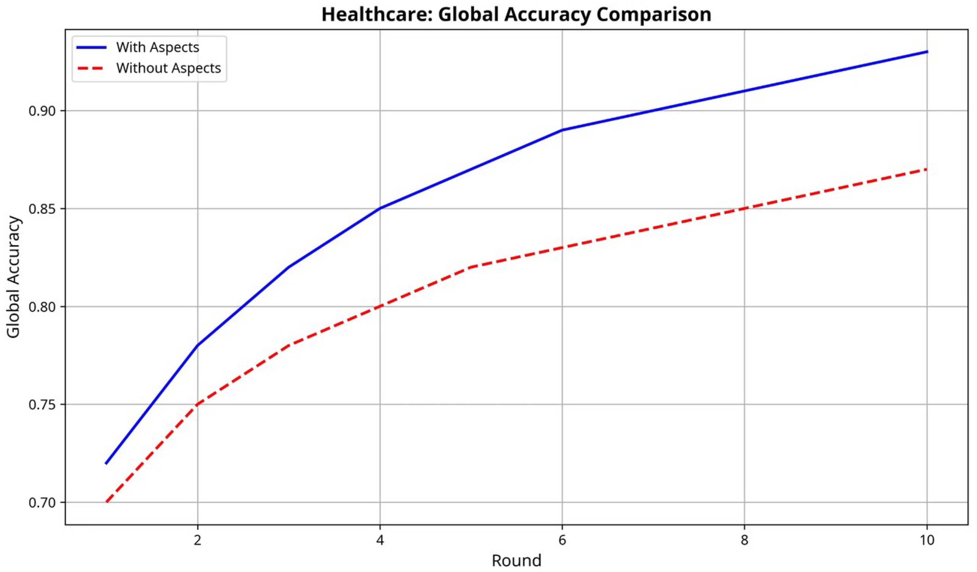 Our mathematical framework provides formal guarantees for the security, privacy, and compliance properties of AspectFL. We prove that the aspect weaving process preserves the convergence properties of underlying FL algorithms while providing enhanced security and compliance capabilities. The framework includes formal definitions of trust metrics, compliance scores, and security properties, enabling quantitative assessment of system trustworthiness. We demonstrate AspectFL’s effectiveness through experiments on healthcare and financial datasets, representing two critical domains with stringent compliance requirements. Our experiments include a detailed and reproducible validation on the real-world MIMIC-III dataset to demonstrate external validity and robustness under realistic data distributions. Our healthcare experiments simulate a consortium of hospitals collaborating on medical diagnosis tasks while maintaining HIPAA compliance and institutional data governance policies. The financial experiments model a banking consortium developing fraud detection capabilities while adhering to PCI DSS requirements and financial regulations.
