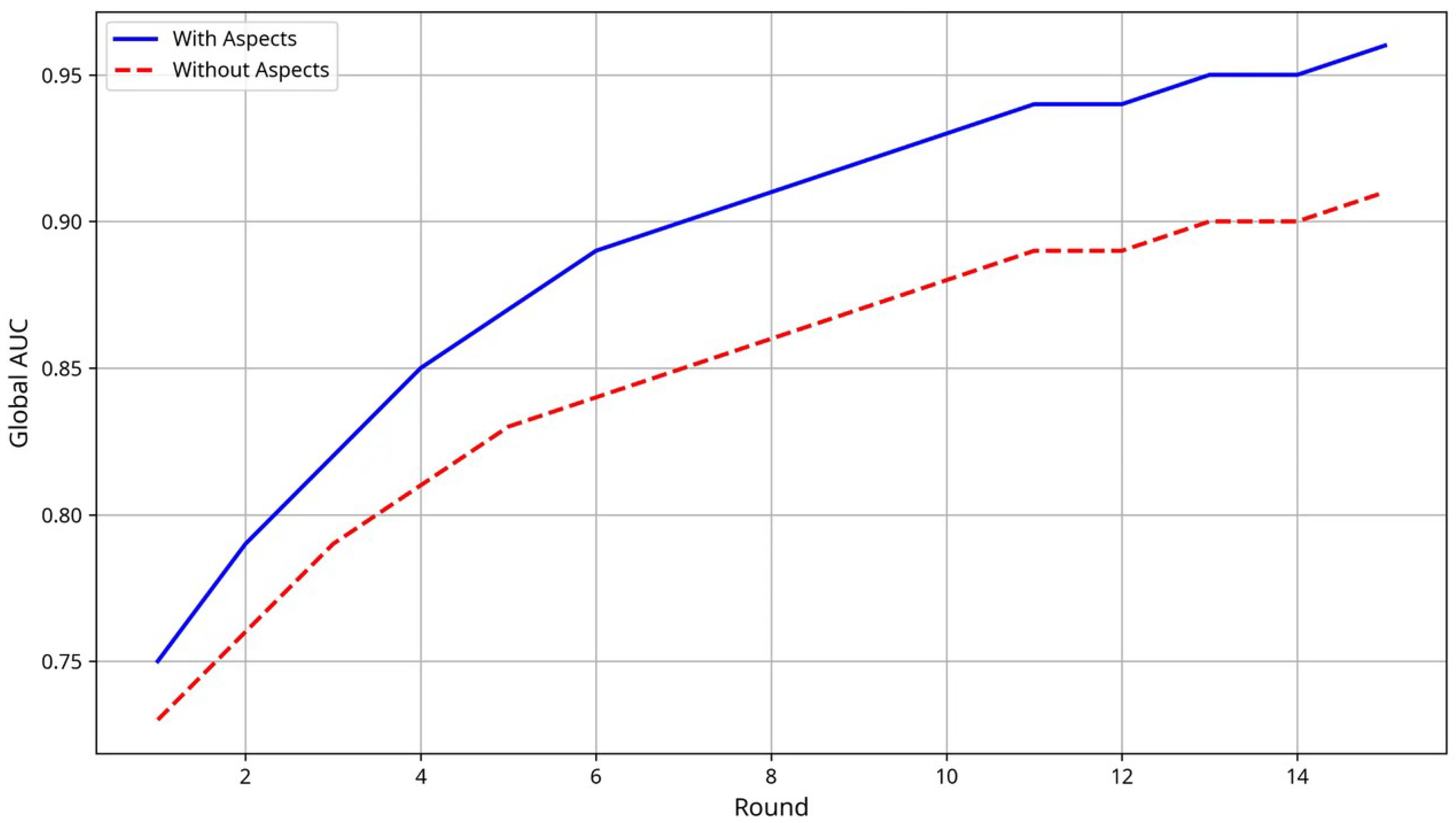The Institutional Policy Aspect (IPA) enables dynamic enforcement of organization-specific policies and regulatory requirements through a flexible policy engine that supports complex policy hierarchies, conflict resolution mechanisms, and real-time compliance monitoring. This aspect allows organizations to define and enforce custom policies while participating in FL collaborations, ensuring that institutional requirements are maintained throughout the learning process. AspectFL’s aspect weaver employs a priority-based execution model that ensures proper ordering of aspect execution while maintaining system performance and scalability. The weaver intercepts FL execution at predefined joinpoints corresponding to critical phases such as data loading, local training, model aggregation, and result distribution [