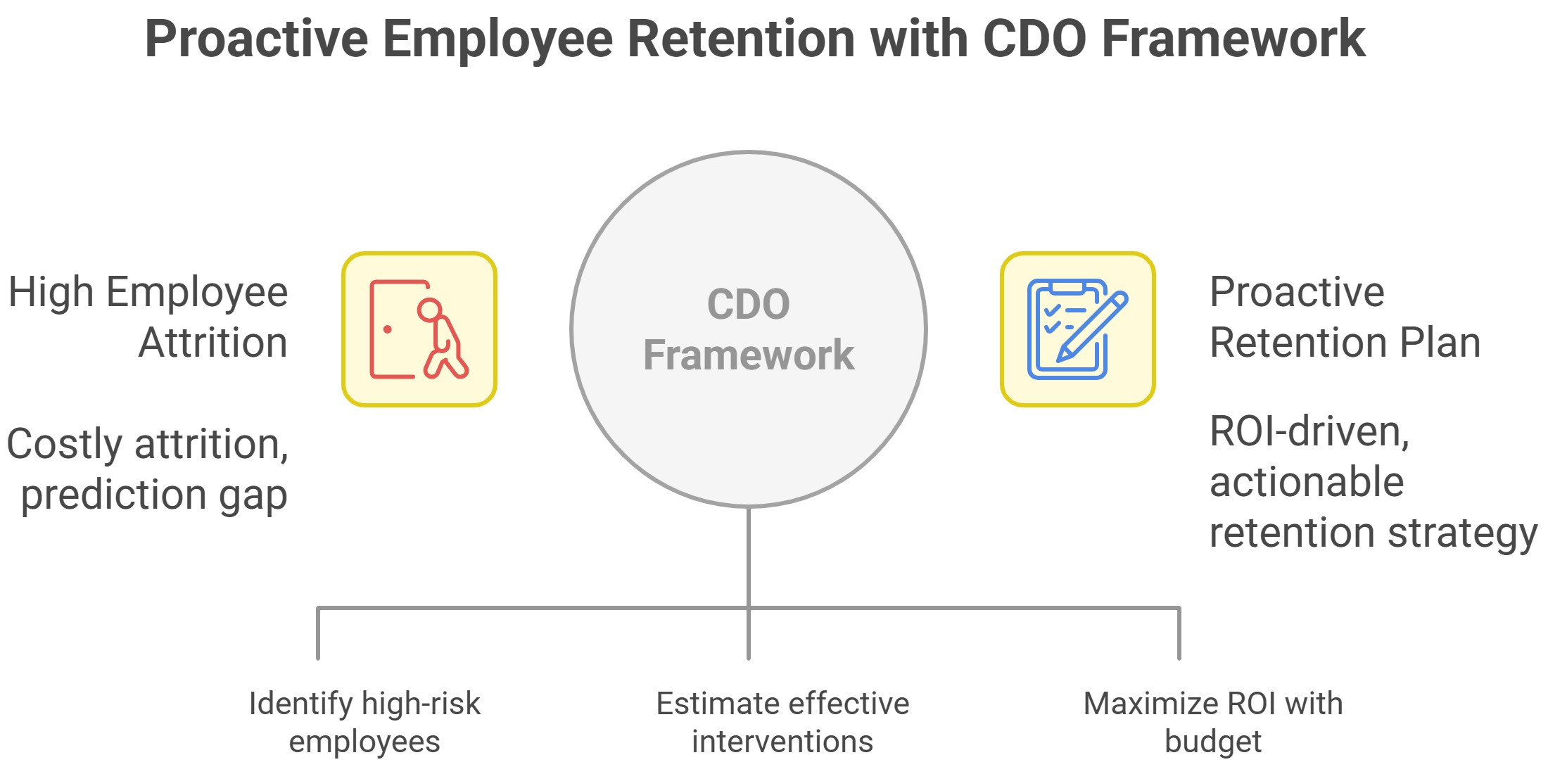 - Outputs: The final outputs are a tactical retention plan, specifying which employee should receive which intervention, and strategic insights into the consistent drivers of both risk and intervention effectiveness.