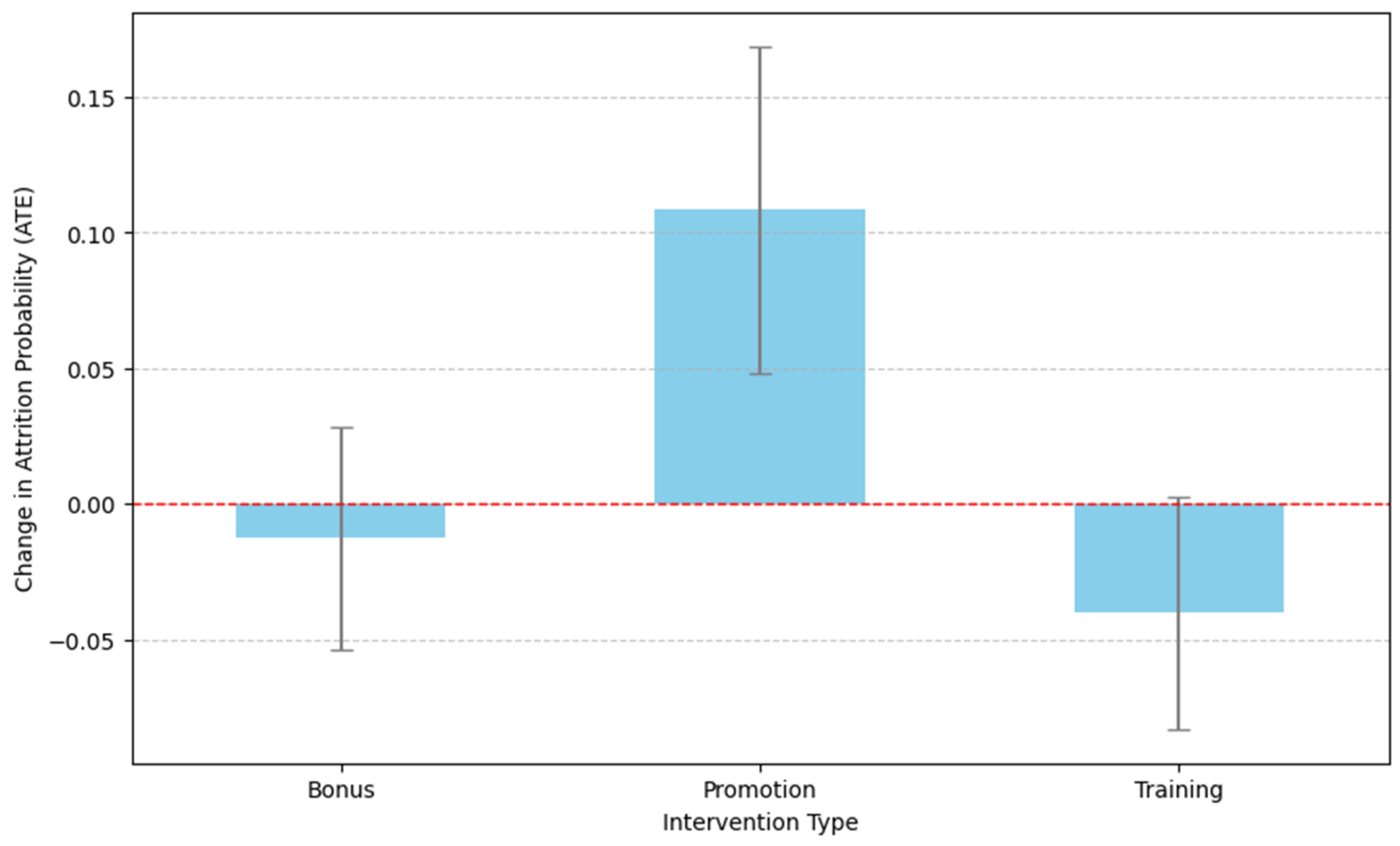 - Thesis: Identify the intervention with the maximum raw attrition reduction (most negative ATE).