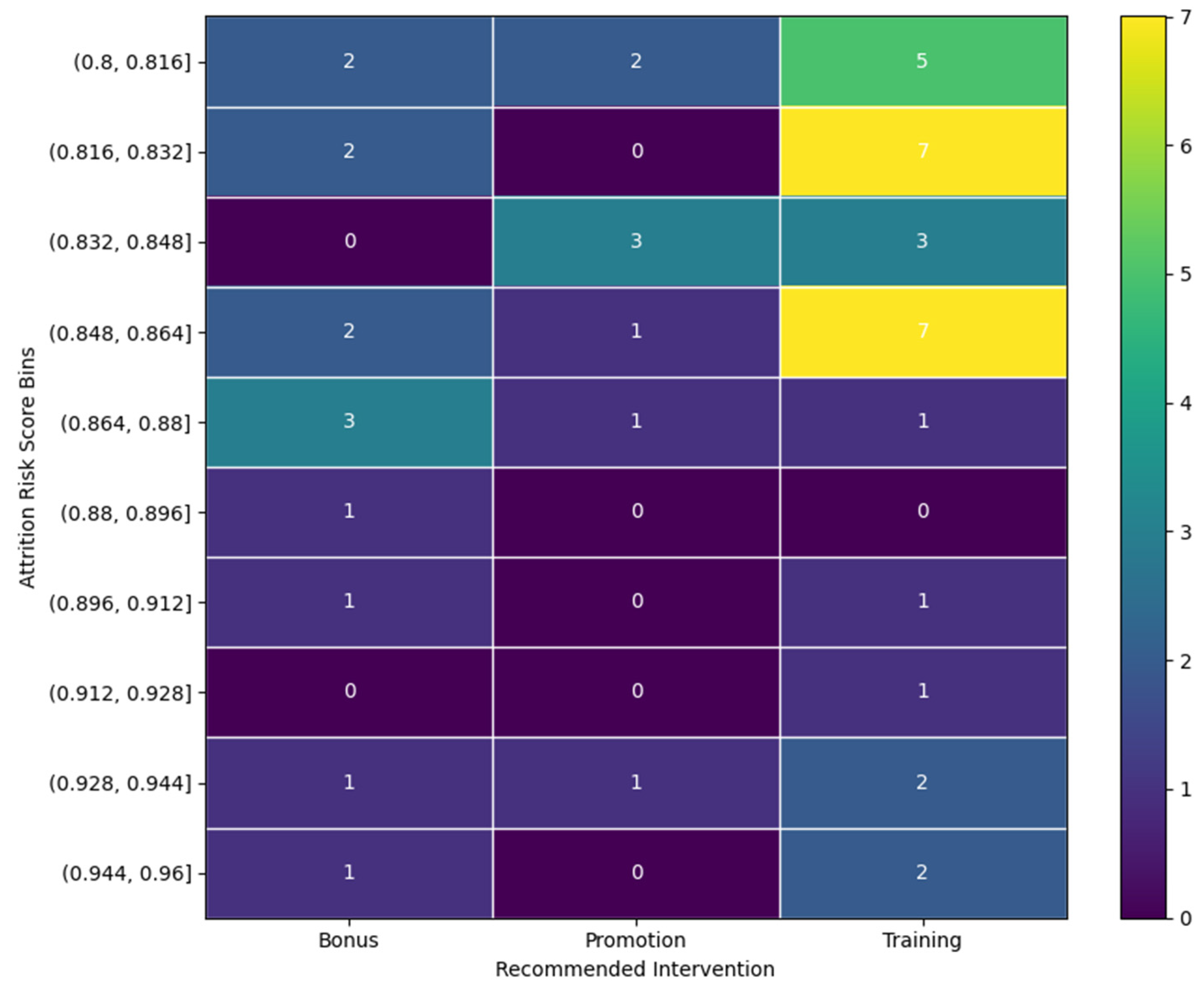 | 1 | Attrition Risk Stratification | Mrisk(xe) → re | Train a predictive model such as Random Forest to predict the probability of attrition (re) for each employee (e). |