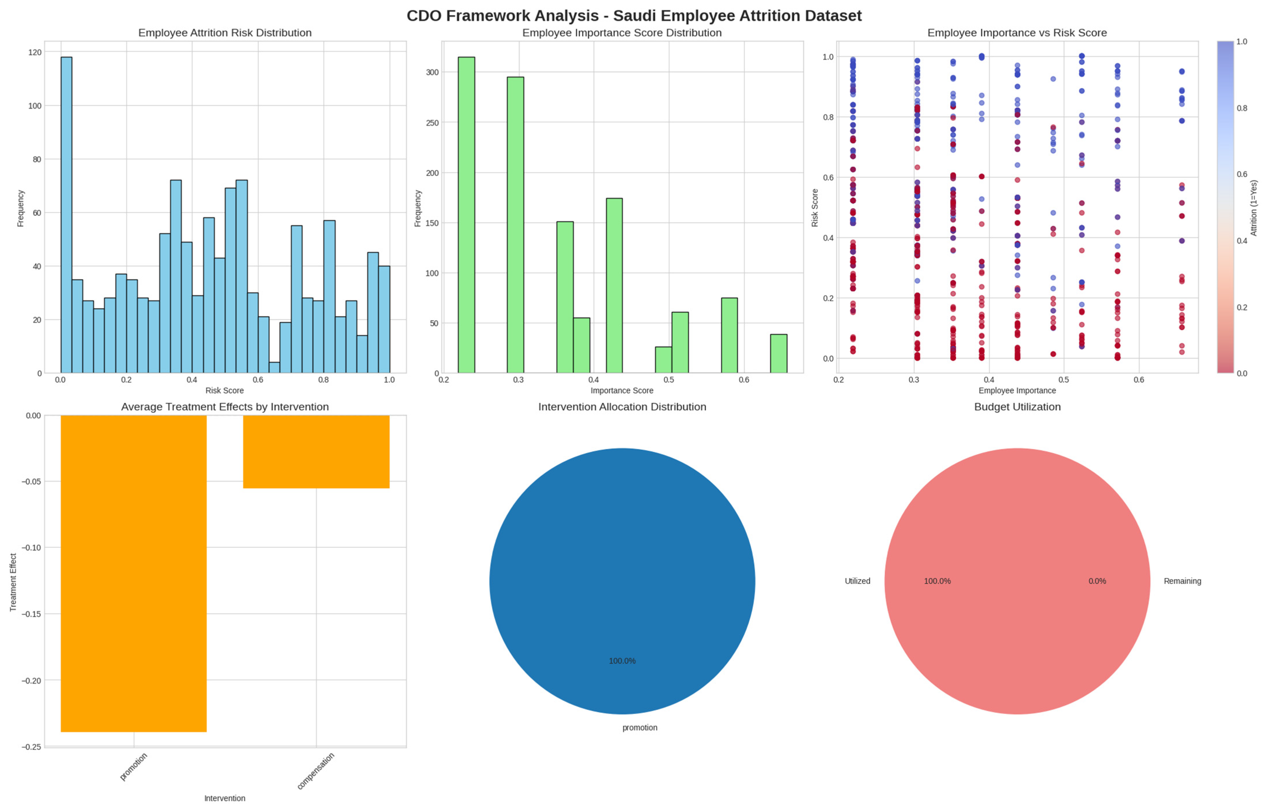 - Our framework moves beyond simple risk scores by explicitly incorporating real-world constraints, including limited budgets and a novel Employee Importance Score, ensuring resources are strategically allocated to critical, at-risk employees.