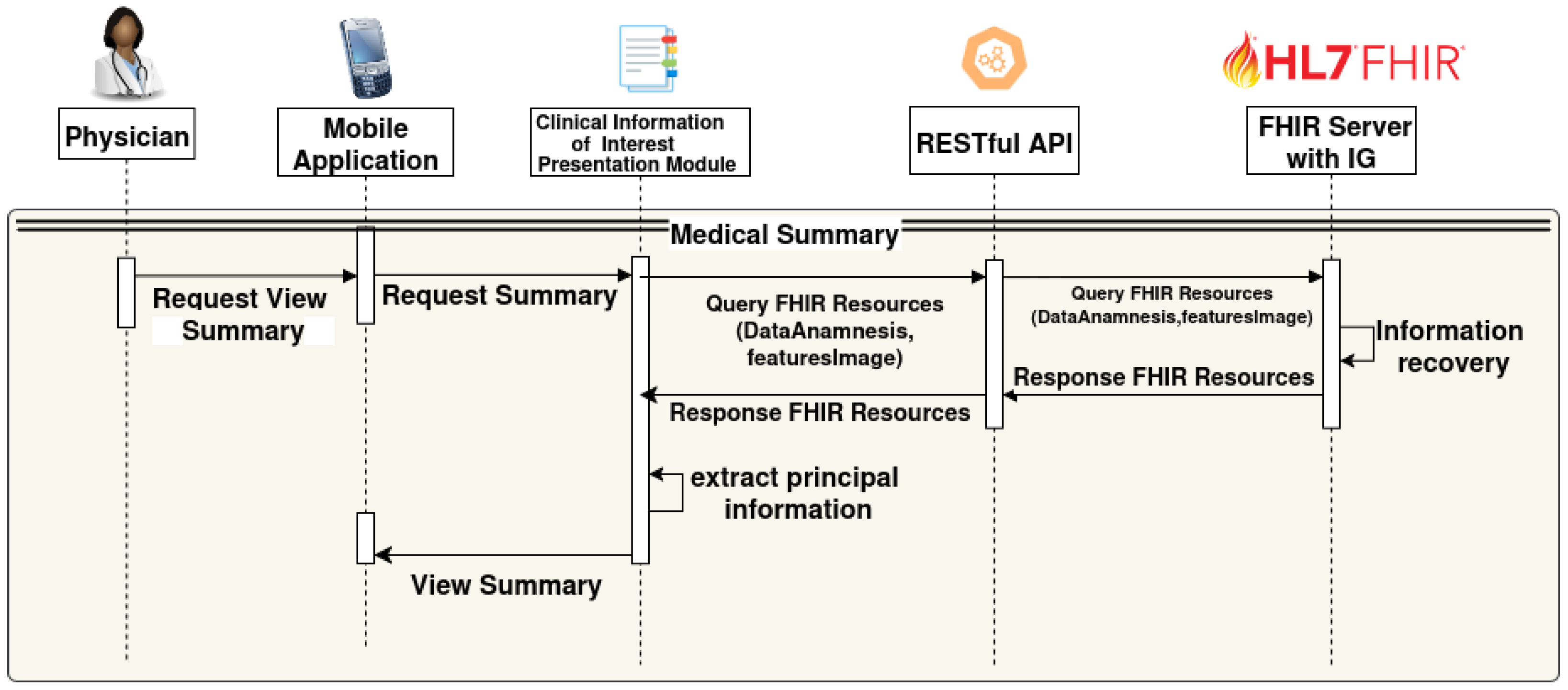 - The app forwards the request to the Clinical Information of Interest presentation module (RequestSummary).