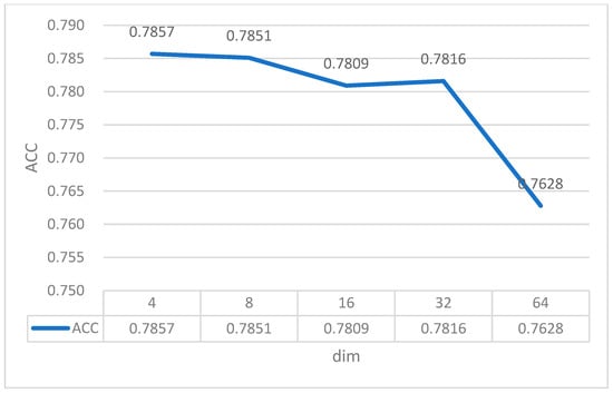In this section, we discuss the impact of the embedding dimensions of entities and relations on model performance. Figure 3 shows that the model’s performance continuously declines as the dimensions increase. The PGDB model exhibits a gradual decrease in performance during the intermediate stages; however, as the embedding dimensions continue to rise, a significant deterioration in performance occurs. When the dimensions become excessively large, it may lead to overfitting. Therefore, an appropriate embedding dimension is crucial for effectively encoding the features of entities and relations. The MOOC dataset has some feature redundancy, and when the dimensionality is relatively low, the model’s performance tends to be optimal. In the data feature space, excessively high dimensionality often leads to overfitting, while too low dimensionality may prevent the model from capturing sufficient patterns. The appearance of a four-dimensional solution reflects that the PGDB model can generalize well with fewer features, which might be due to effective removal of noise in the data, or the strong correlations between the features in the dataset, allowing a lower-dimensional representation to achieve the global optimum.