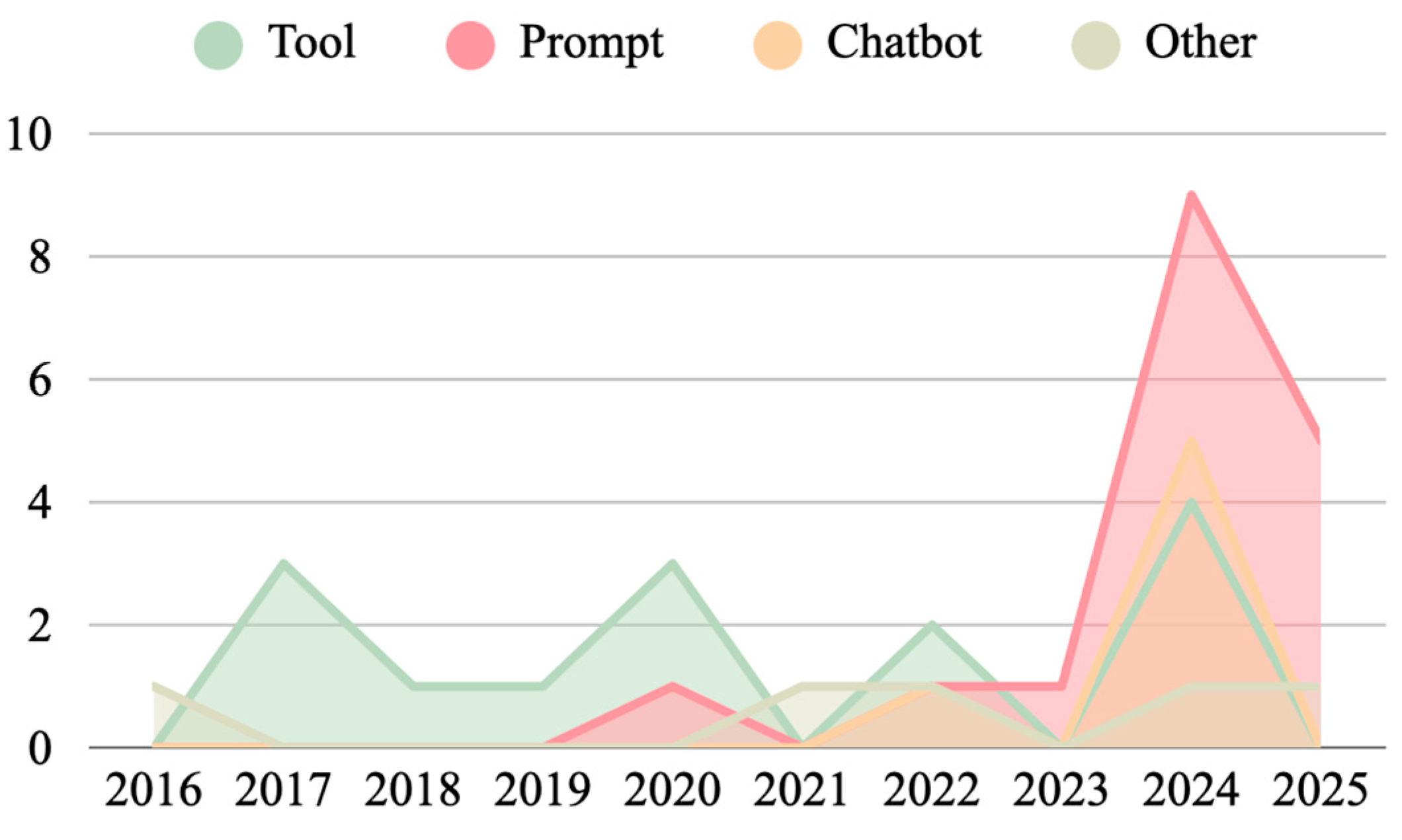 3.1. Research Question 1. Is There Evidence of AI Tools and Applications That Support the Representation of Learning Designs?