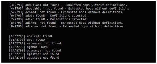 Word validation snippet towards the Indonesian dictionary (KBBI) https://kbbi.web.id (accessed on 13 September 2025) (top) and Malay (PRPM) https://prpm.dbp.gov.my (accessed on 13 September 2025) (bottom).