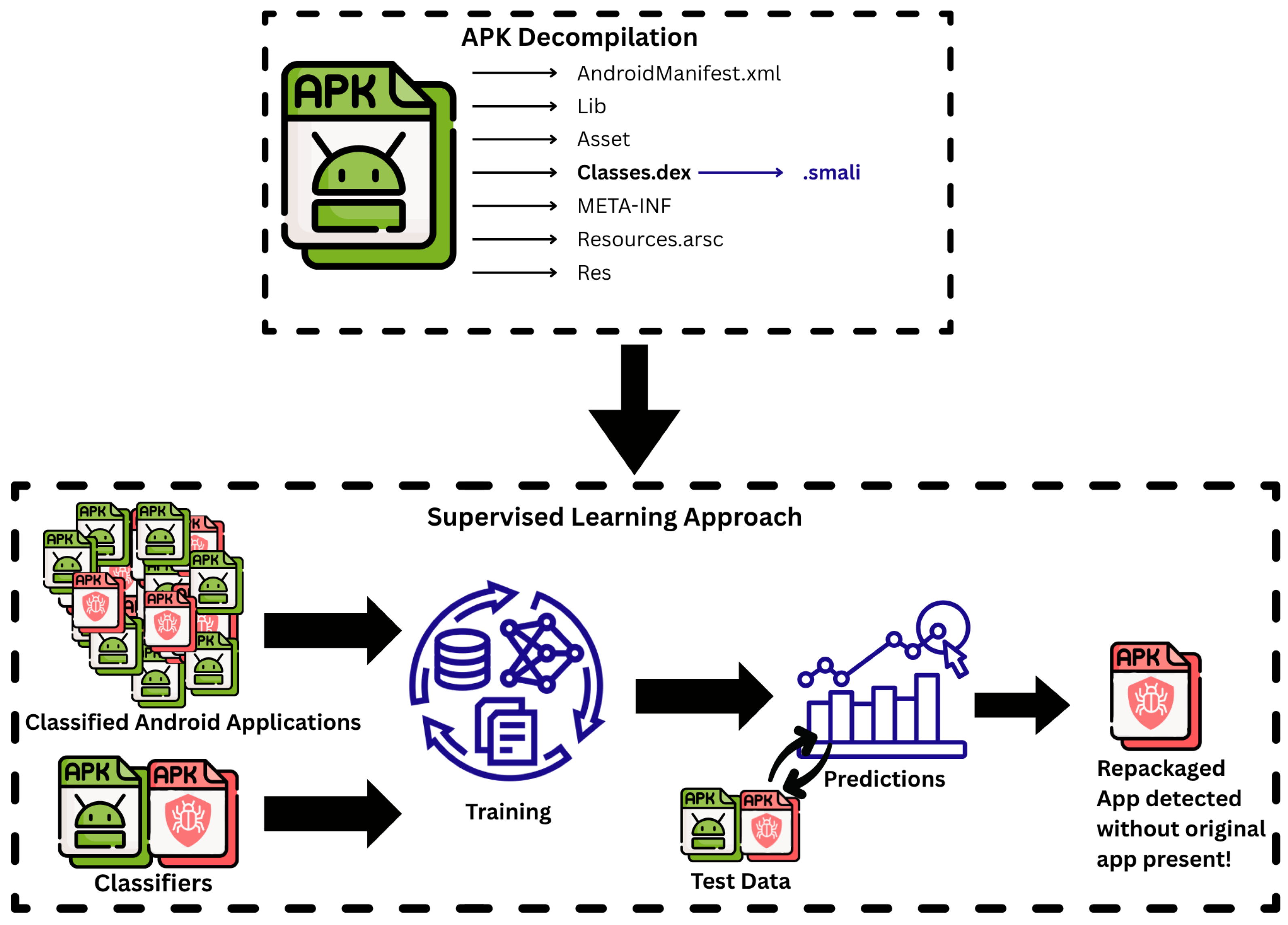 - Dataset Preparation: We curate and preprocess applications from the RePack dataset [8], ensuring that each sample is properly labeled as original or repackaged.
