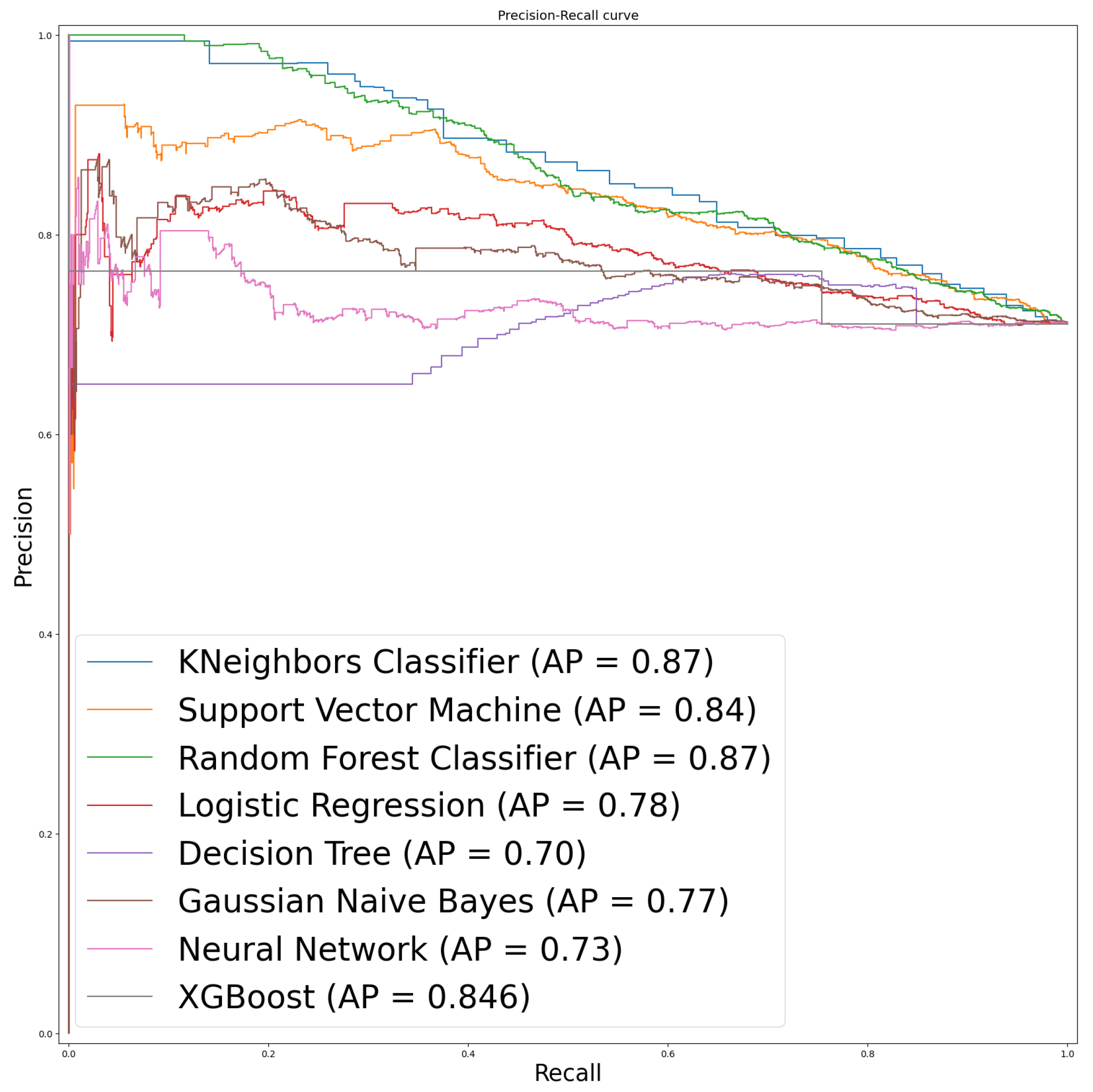 | Algorithm | Precision | Recall | F-1 Score | PR AUC |
