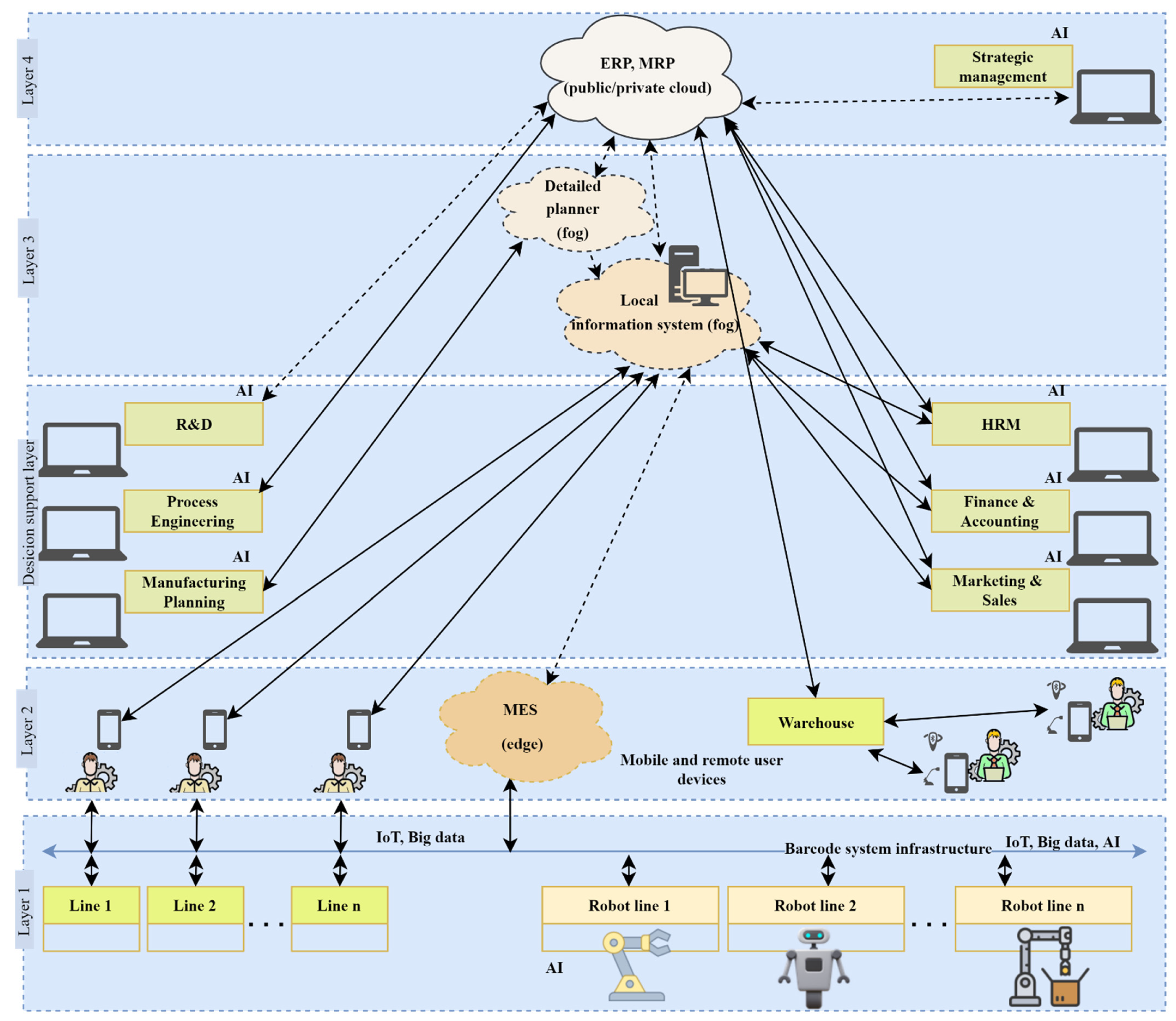 - Supports SMEs through modular, phased adoption (low-cost sensorization–edge analytics–fog/MES coordination–cloud/AI), use of open standards to avoid vendor lock-in, and the option to leverage managed cloud services to reduce upfront investment and IT burden.