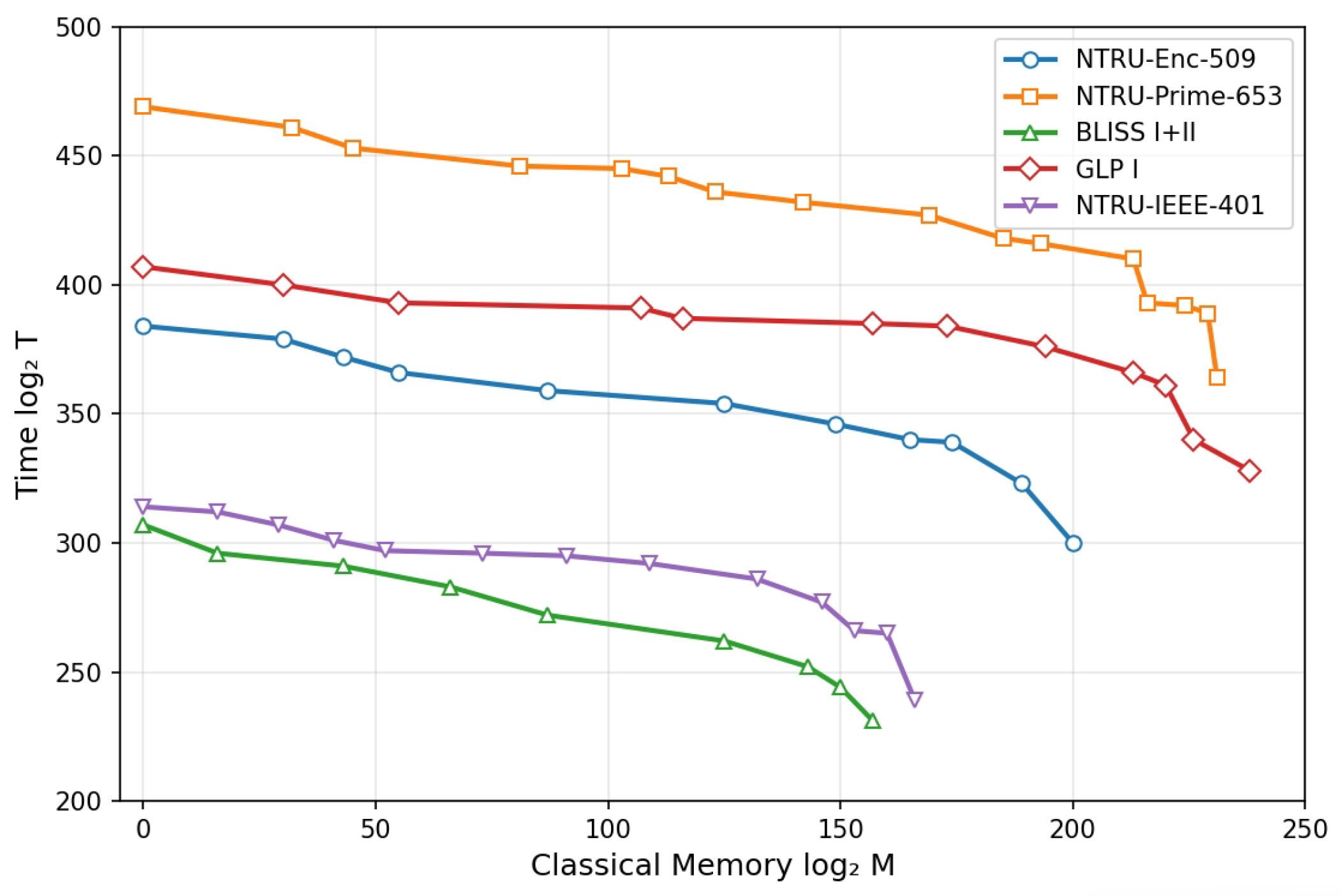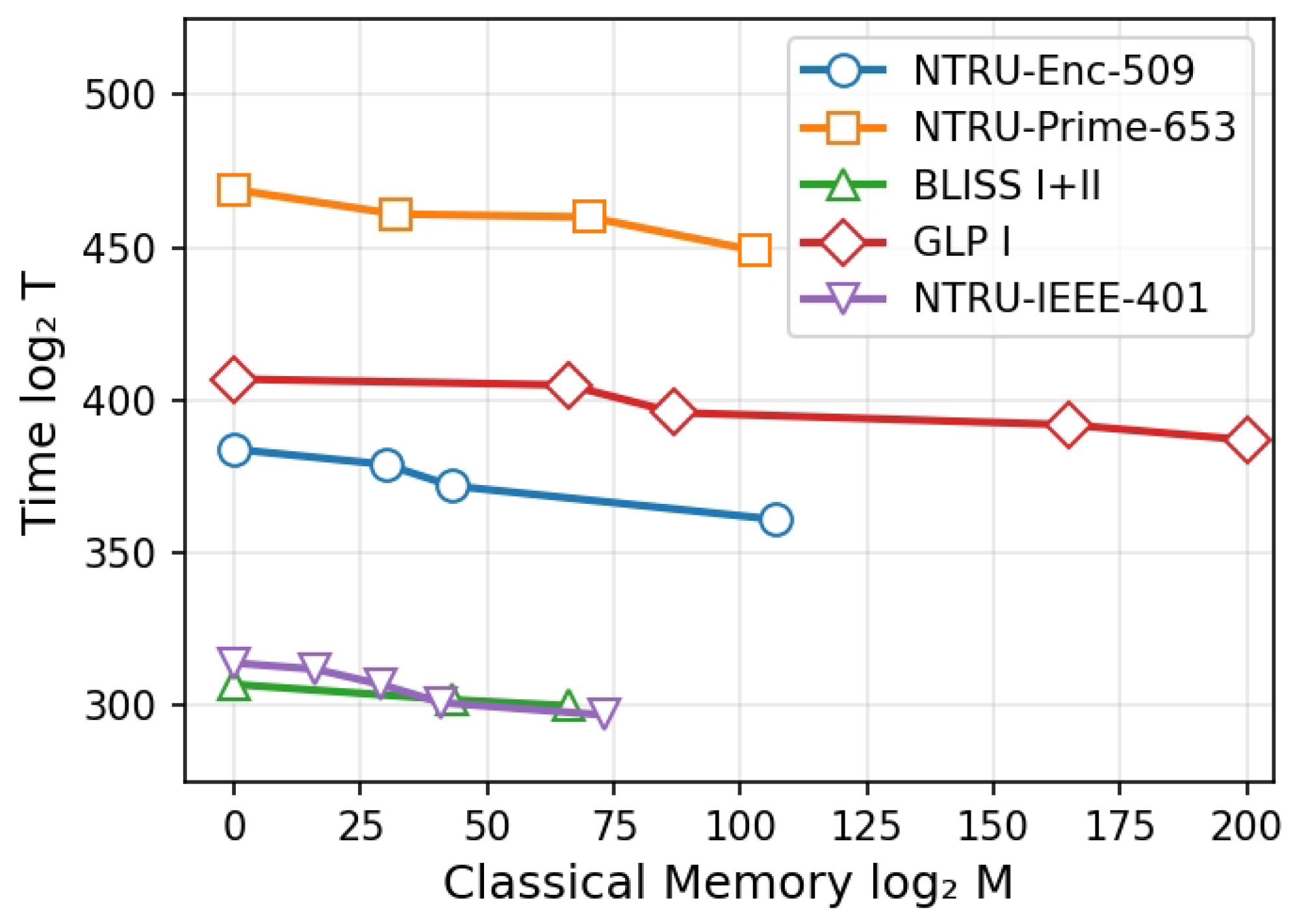 bound of vHKM’s quantum combinatorial attack. This represents a significant reduction in the gap between asymptotic predictions and concrete performance. As shown in