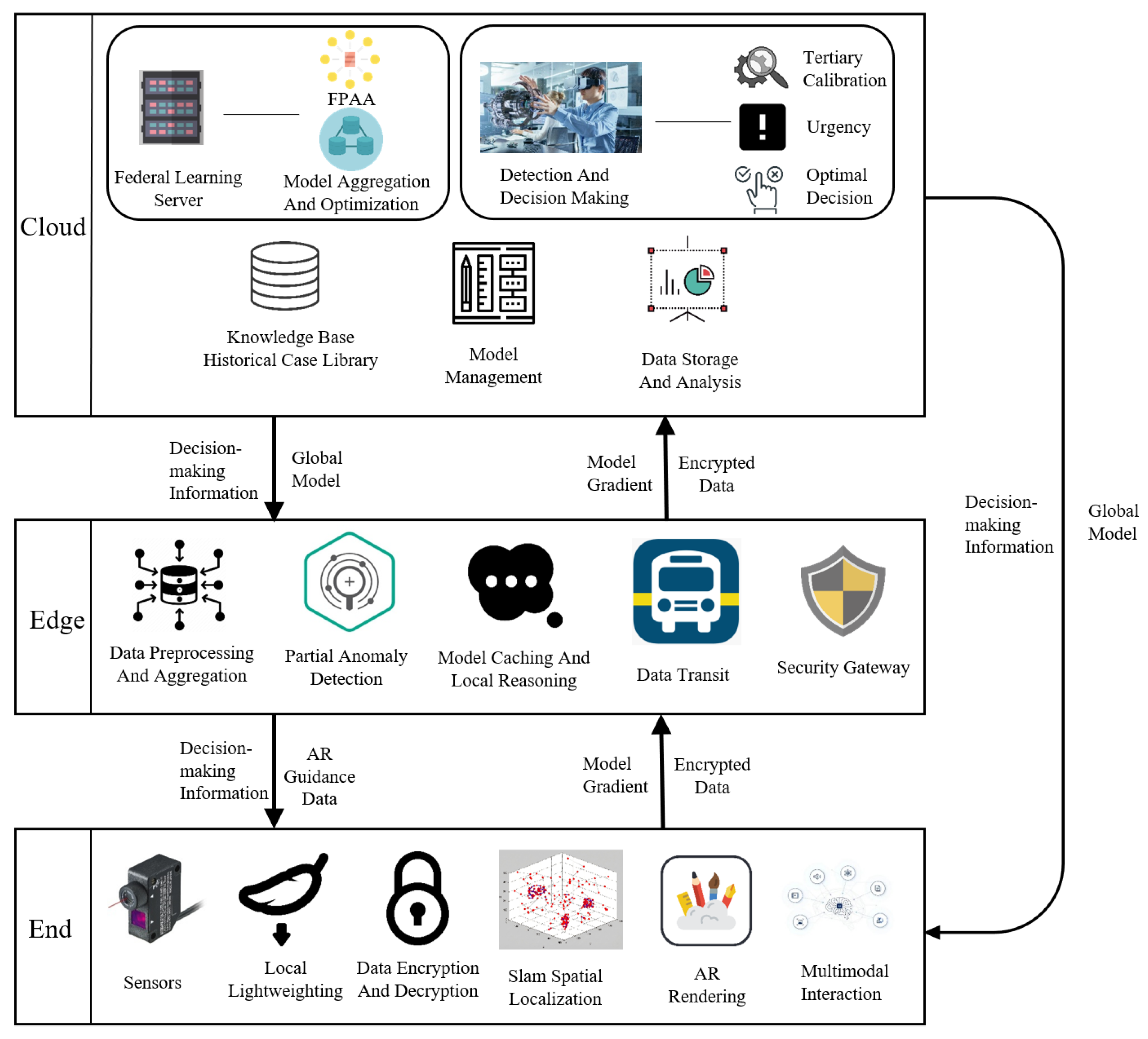 - System Integration & Validation: We implement a complete “cloud-edge-end” collaborative framework specifically for AR-assisted information push. This architecture validates the PFAA algorithm in a realistic industrial workflow, demonstrating significant improvements in task completion rates and decision adoption compared to rule-based and standard FL baselines.
