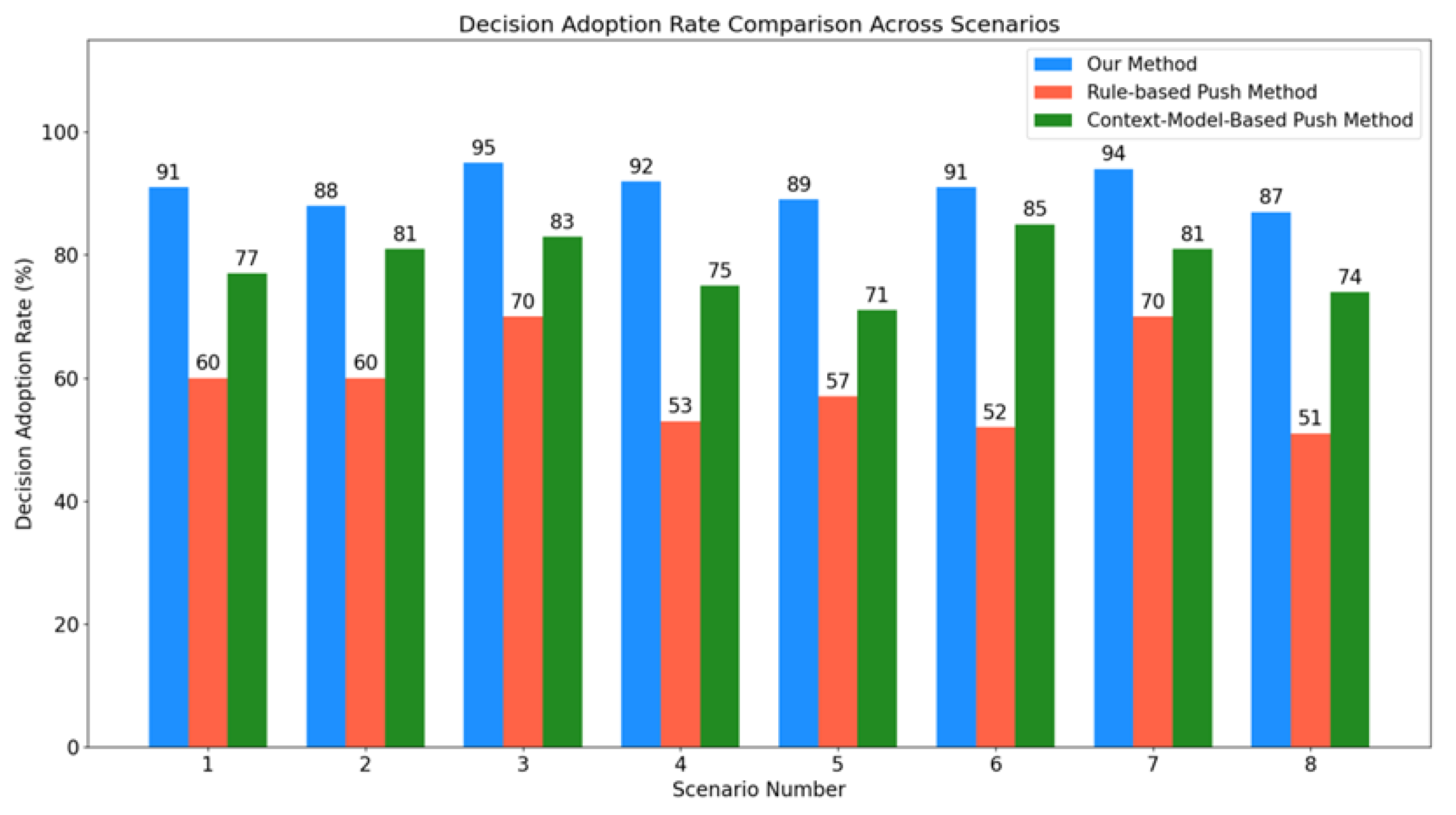 - Maintenance Decision and Guidance Effectiveness: This dimension focuses on the actual application effectiveness of system-generated maintenance decision information and AR guidance.Task Completion Rate (): Measures the proportion of maintenance personnel who successfully complete their pre-scheduled maintenance tasks with the assistance of AR guidance. Its calculation formula iswhere represents the number of successfully completed tasks, and represents the total number of tasks attempted.Decision Adoption Rate (): Measures the proportion of operational decisions or solutions recommended by the system that are actually adopted and executed by operations personnel. Its calculation formula iswhere represents the number of adopted decisions, and represents the total number of decisions recommended by the system.