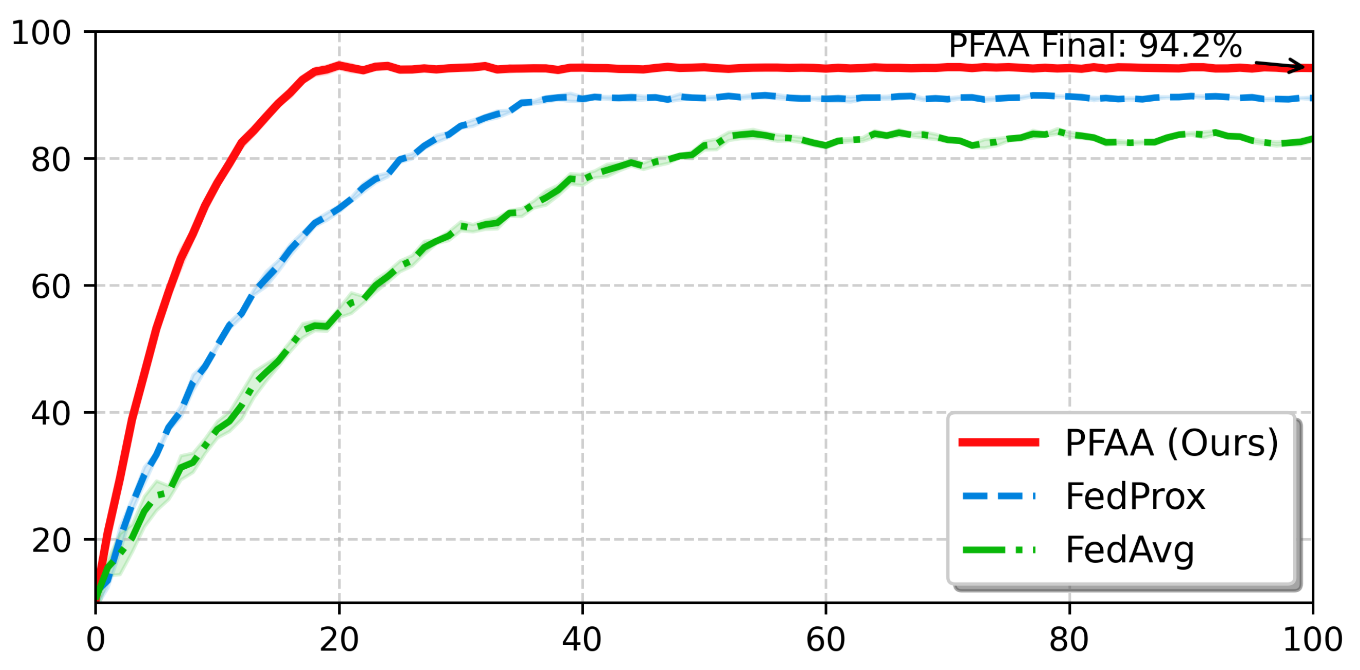 | PFAA (Ours) | +Dynamic Attention | 94.2 | 93.8 | 94.5 |