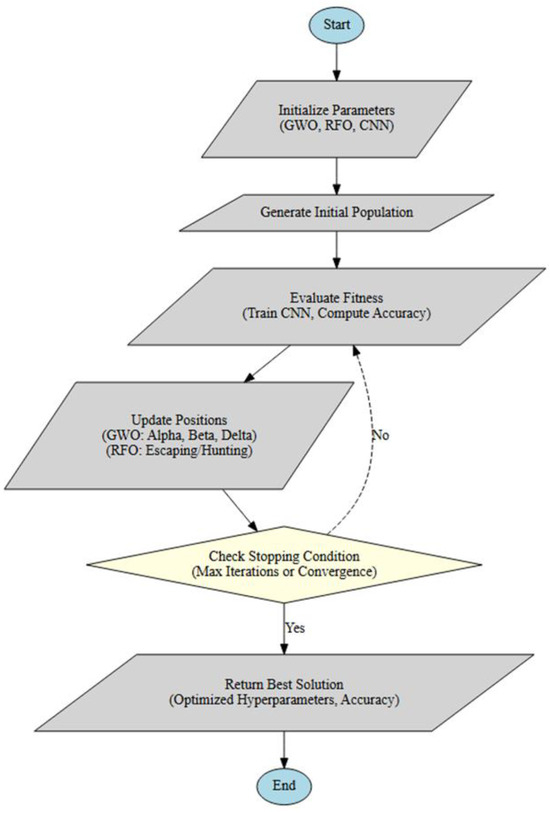 It makes sense to take into account optimization techniques for unknown hyperparameters if one wants to improve the performance of a CNN with unknown hyperparameters. An effective substitute for handling this intricate optimization environment is bio-inspired metaheuristic algorithms. Some of the methods that have been used with good results in ML model tuning include the Grey Wolf Optimizer (GWO) [51], Whale Optimization Algorithm (WOA) [52], and Particle Swarm Optimization (PSO) [53]. Recent studies, such as the hybrid Adaptive PSO and WOA (APSO-WOA-CNN) by Bahaa et al. [54], are highly successful but limited by computational cost and being prone to premature convergence. Other approaches, like GWO-ELM [55] and FS-ROA [56], are also highly promising but do not have a well-balanced means of global exploration and local exploitation, which is highly essential in finding resilient hyperparameter sets.