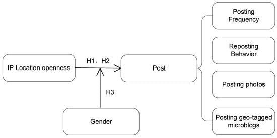The literature relevant to the IP location openness primarily focuses on two key areas. First, we consider the factors influencing social platform users’ location disclosure behavior. Numerous empirical studies have explored this topic; for example, the work of Chen [1], through questionnaires, found that perceived benefits positively impact users’ disclosure of location information, while privacy risks have a negative impact. Kim [2] found that users who had disclosed geo-tagged posts were more likely to repeat such behavior than other users. Wang [3] found that Facebook users’ “check-in” behavior is closely related to their characteristics, and users with a tendency to show off have a higher frequency of “check-in” behavior. Further, Sun [4] analyzed the heterogeneous impact of gender on address disclosure behavior and found that the impact of utilitarian benefits on men is more significant than that on women, while the impact of privacy risks on women’s disclosure intentions is more significant than that of men. Second, we examine the influence of information surveillance on social media participation behavior. People who are aware of surveillance behavior tend to be more cautious, discreet, and less willing to express their opinions [5]. When online users perceive surveillance, a chilling effect may occur and users may be reluctant to express their opinions on social media. Perceived surveillance has a significant negative impact on the willingness of Turkish social media users to express their views [6].
