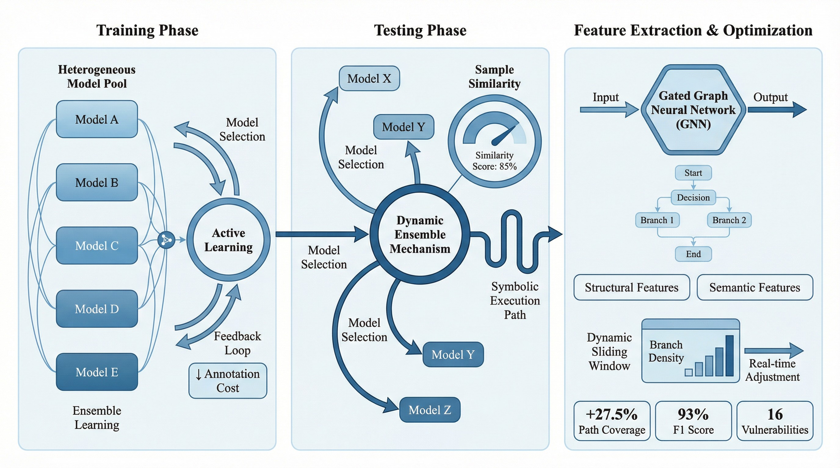 Therefore, there is an urgent need for a unified framework that combines active learning with a dynamic ensemble mechanism to balance path exploration depth, model generalization, and sample utilization efficiency. Existing studies tend to address these limitations separately and have yet to develop an integrated solution that can simultaneously improve generalization, reduce annotation costs, and adapt to diverse program structures during symbolic execution. The Deep Active Ensemble Learning Framework (DLF) proposed in this work is designed in response to these needs, providing a more coherent and effective way to address these challenges and compensating for the shortcomings of existing approaches.