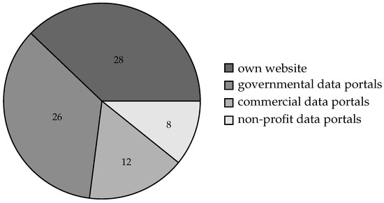 Publication venues of anonymised data (). Most respondents published data on their own websites or on governmental portals, while commercial and non-profit portals were less common.