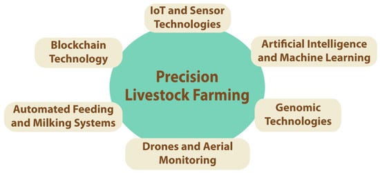 Precision livestock management employs wearable health monitors and automated feeding systems to monitor and enhance animal health, welfare, and productivity [17]. Genomic selection utilizes genetic information to improve breeding programs, and enhances characteristics such as disease resistance and productivity [18].