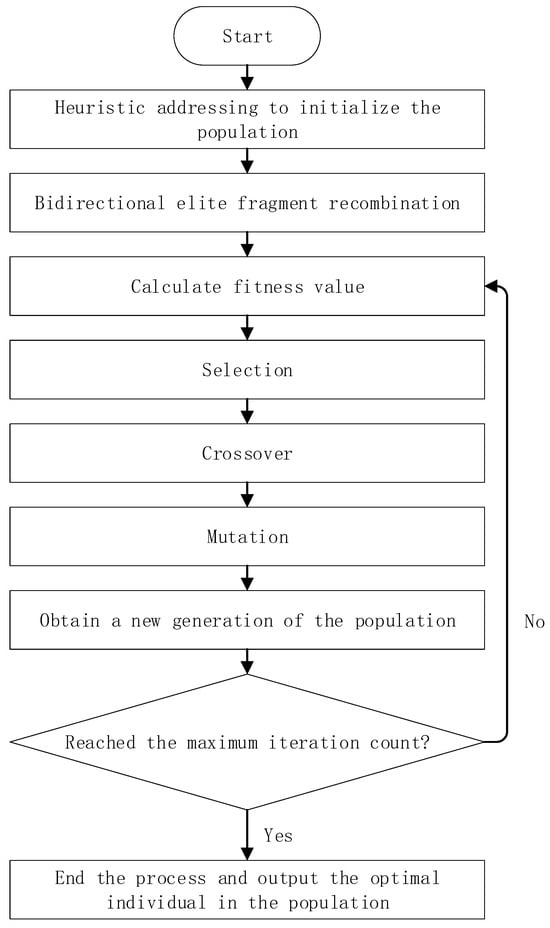 Building on the principles of genetic algorithms, we propose a heuristic-elite genetic algorithm (HEGA) that incorporates heuristic strategies and a bidirectional elite segment recombination strategy. The flowchart of HEGA is shown in Figure 3.