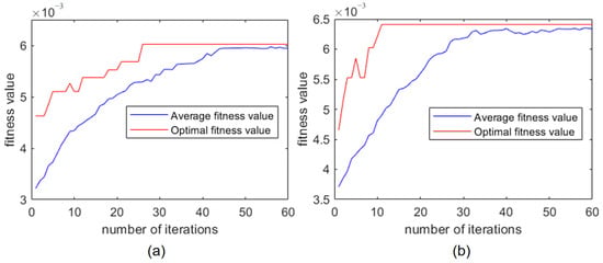 Convergence curve of online testing. (a) PS-GA. (b) The improved GA in this paper.