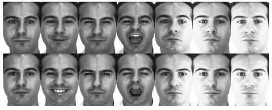 - Belhumeur, P.; Hespanha, J.; Kriegman, D. Eigenfaces vs. Fisherfaces: Recognition using class specific linear projection. IEEE Trans. Pattern Anal. Mach. Intell. 1997, 19, 711–720. [Google Scholar] [CrossRef]