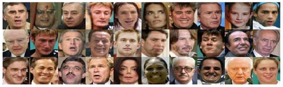 - Huang, G.B.; Mattar, M.; Berg, T.; Learned-Miller, E. Labeled faces in the wild: A database forstudying face recognition in unconstrained environments. In Proceedings of the Workshop on Faces in ‘Real-Life’ Images: Detection, Alignment, and Recognition, Marseille, France, 17–20 October 2008. [Google Scholar]