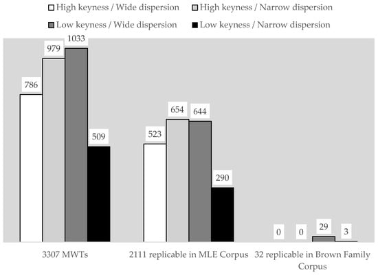 Replicability of MWTs by keyness and dispersion in two different corpora.